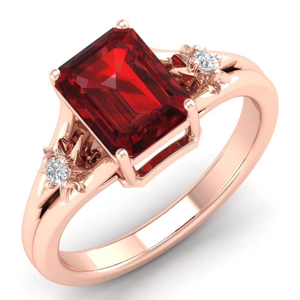 แหวนเพชรโมอิสซาไนต์ทรงโซลิแทร์ REYES ราคาโรงงาน ทอง 10K 14K 18K โรสโกลด์ 2.5 กะรัต ทรงเหลี่ยมมรกต พลอยแกรนเนต เครื่องประดับแฟชั่น ของขวัญ