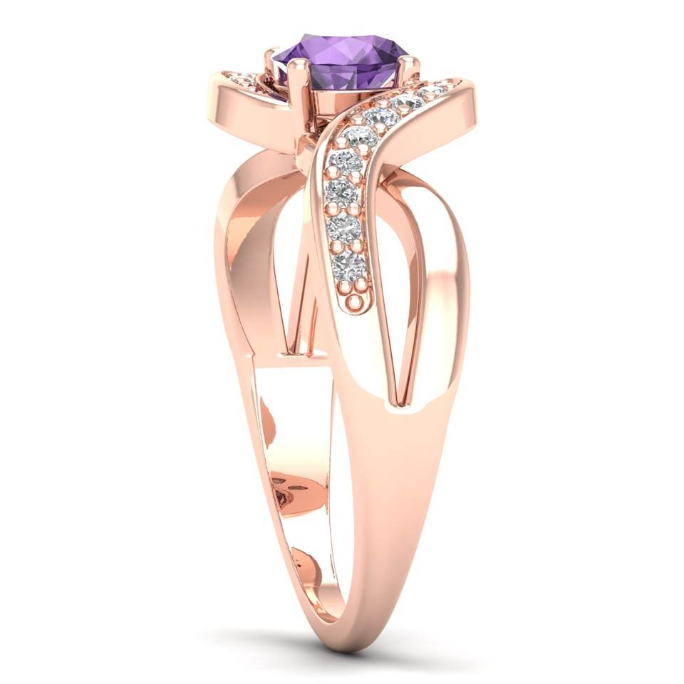 แหวนหมั้นเพชรโมอิสซาไนต์ทอง 14K ราคาส่งจากโรงงาน REYES ทรงกลม 0.84 กะรัต ประดับพลอยอะมีทิสต์ เครื่องประดับสไตล์มินิมอล