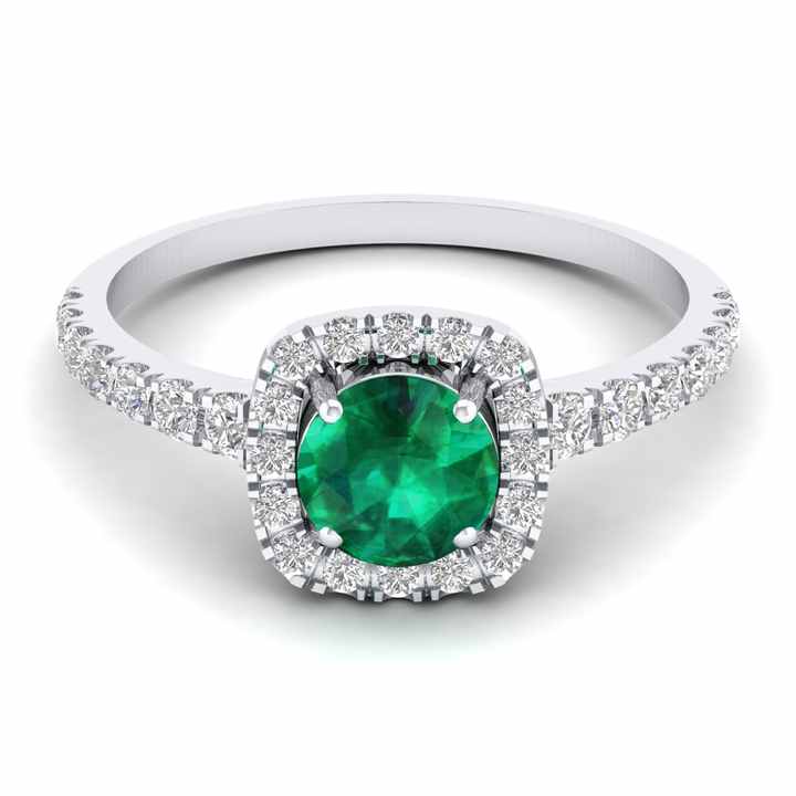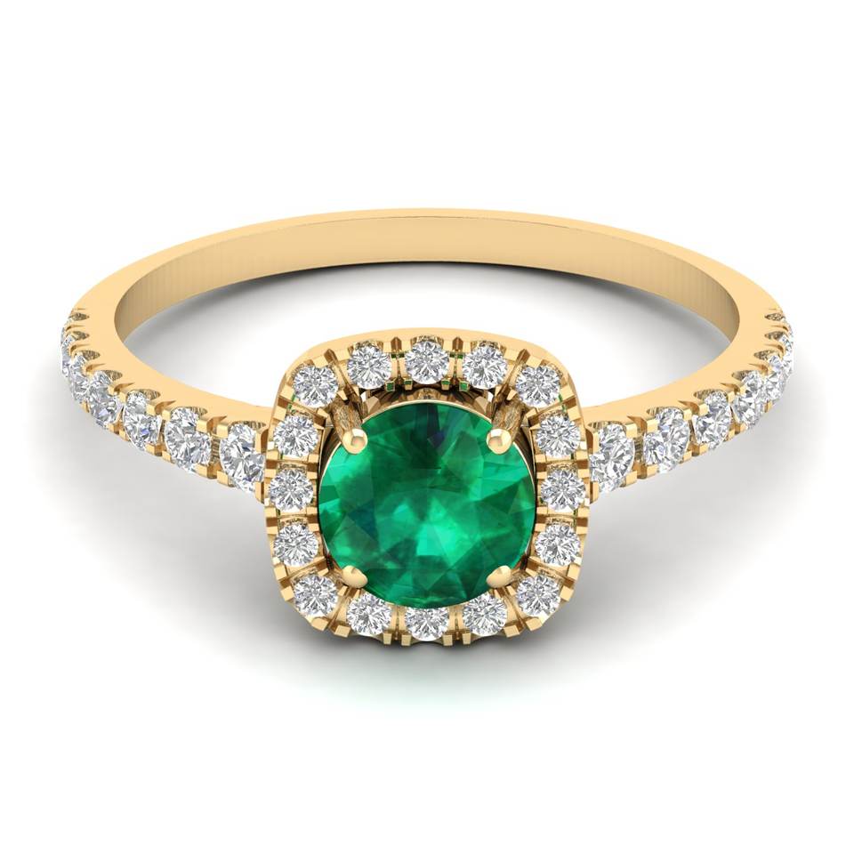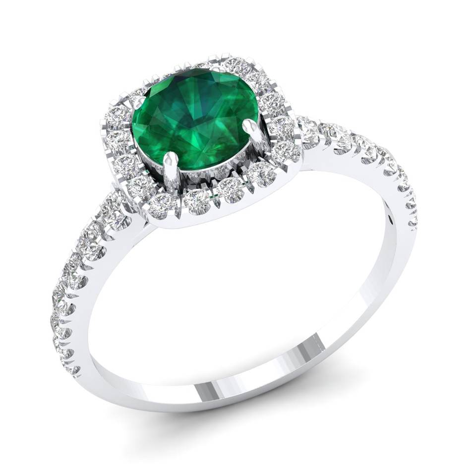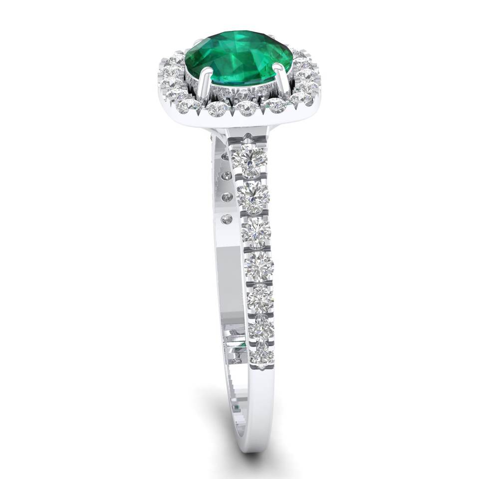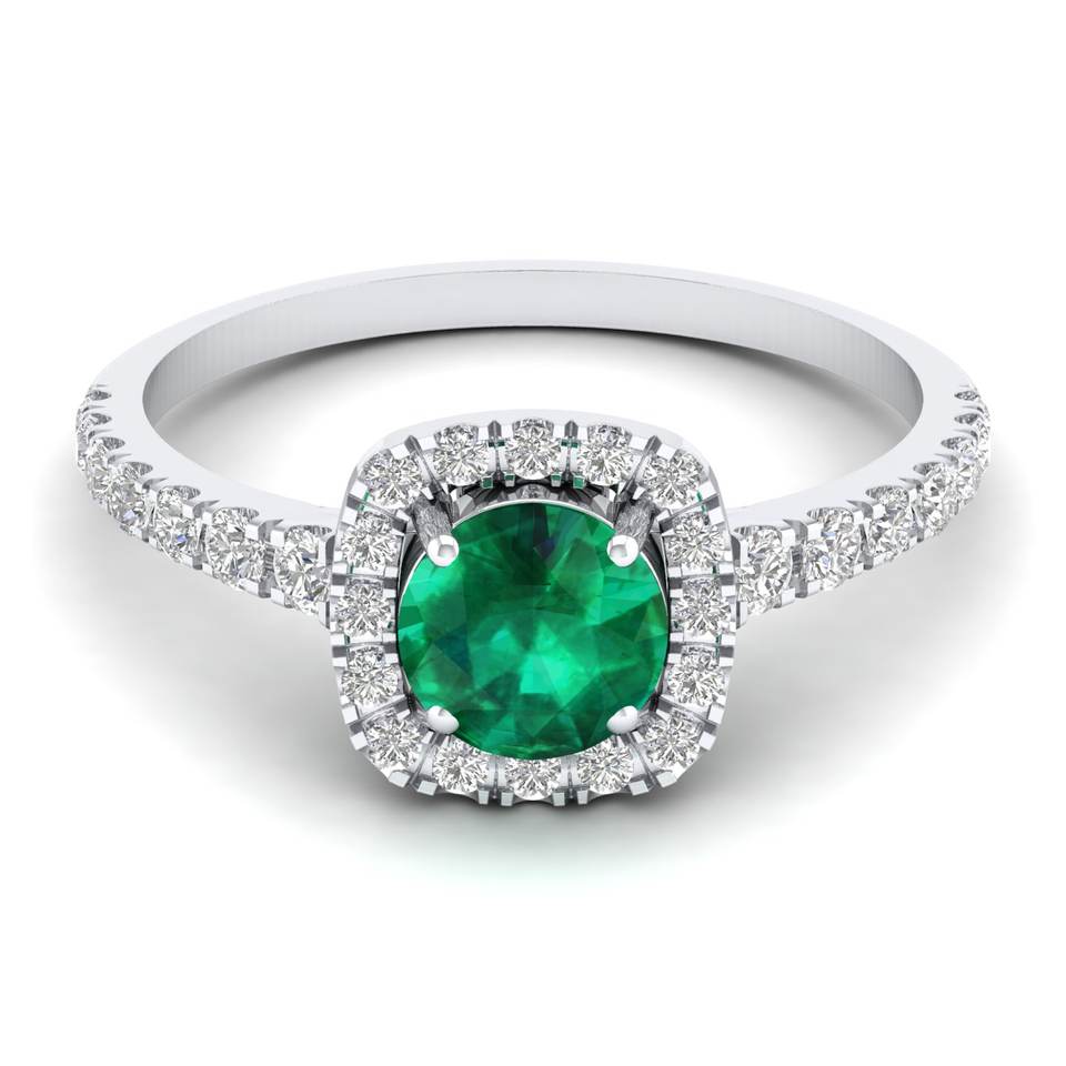 แหวนเงินแท้ 925 ประดับมอยส์ซาไนต์ทรงกลม 0.84 กะรัต คุณภาพ VVS ได้รับการรับรองจาก REYES GRA พร้อมพลอยมรกตธรรมชาติทรงกลมประดับรอบ