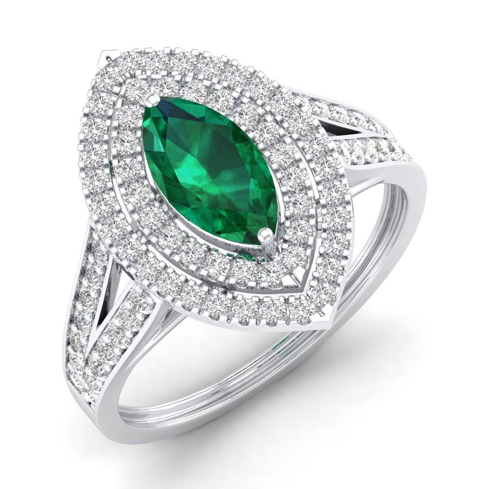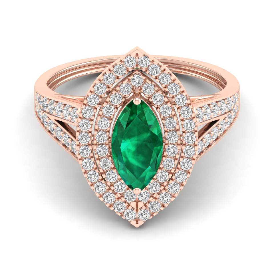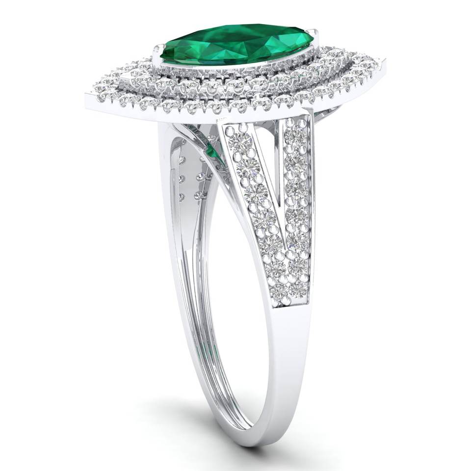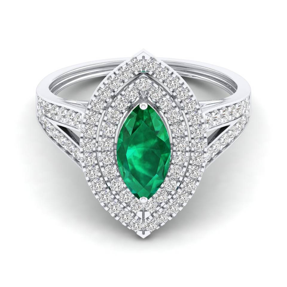 แหวนหมั้นเพชรพลอยมรกตทรงมาร์คีส์ 1 กะรัต ทองคำแท้ 14K งานแฮนด์เมด REYES สำหรับผู้หญิง ได้รับการรับรองจาก IGI
