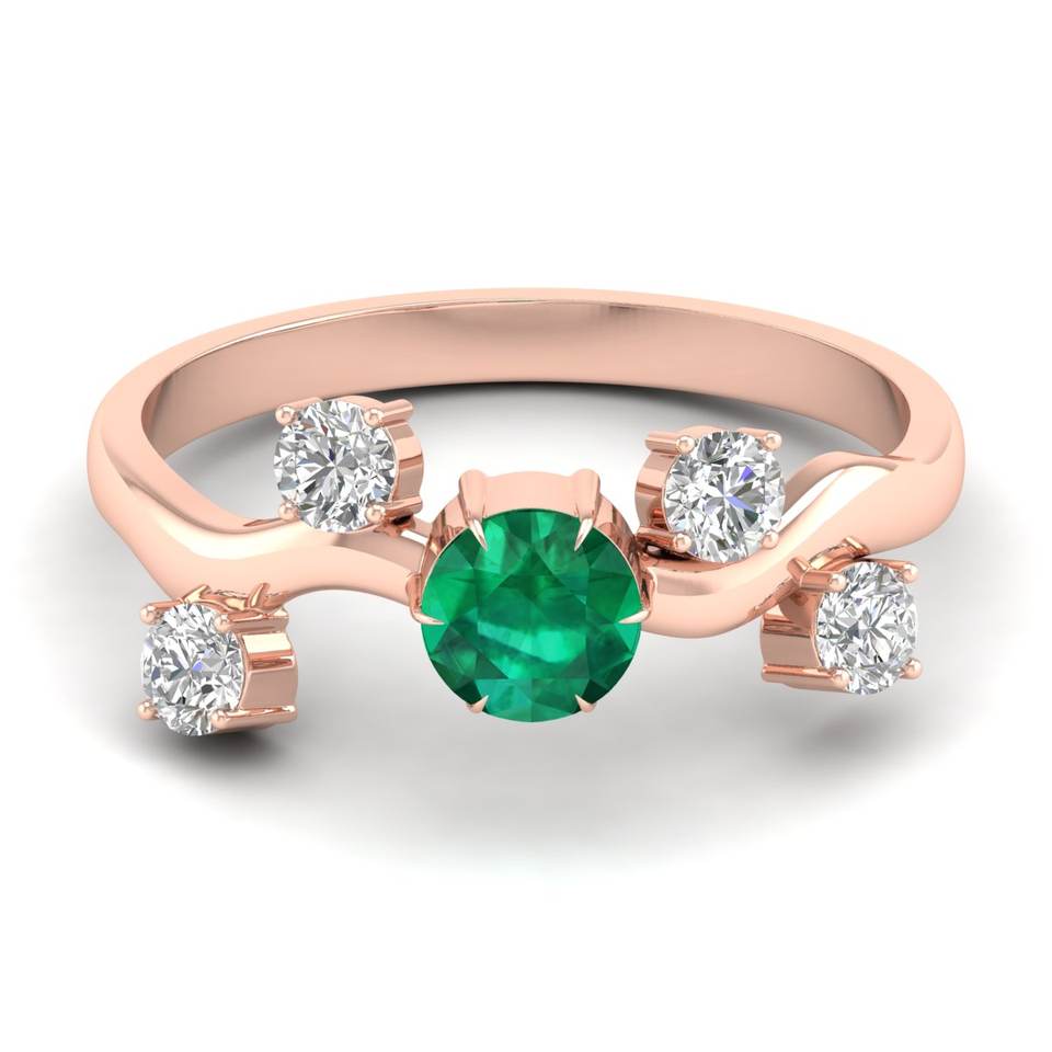 แหวนทองคำแท้ 14K ทรงกลมเจียระไนแบบบริลเลียนต์ ประดับพลอยมรกต 0.5 กะรัต พร้อมมอยส์ซาไนต์ สำหรับผู้หญิง ขายส่งเครื่องประดับ REYES Handmade