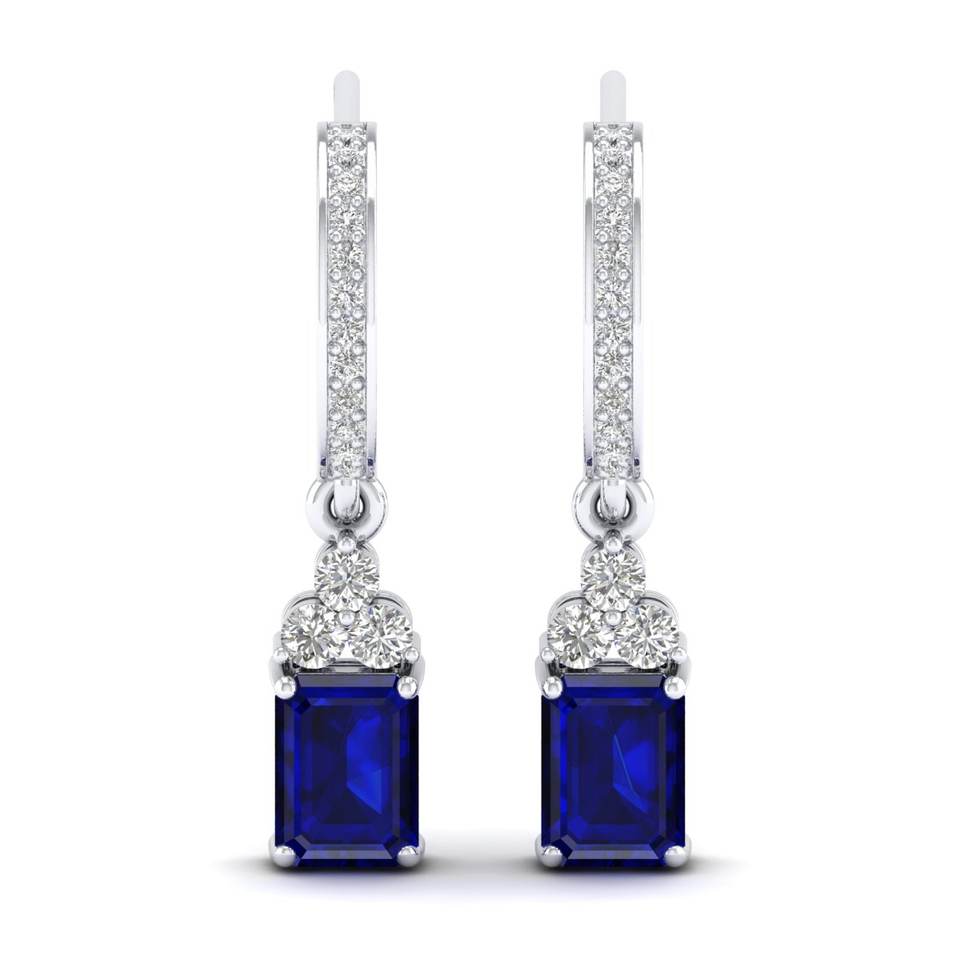 REYES แฮนด์เมดมรกตตัด 2 กะรัตสีฟ้าไพลิน Drop ต่างหูที่กําหนดเองอินเทรนด์ 14 พันทอง Moissanite เครื่องประดับงานแต่งงานของขวัญ