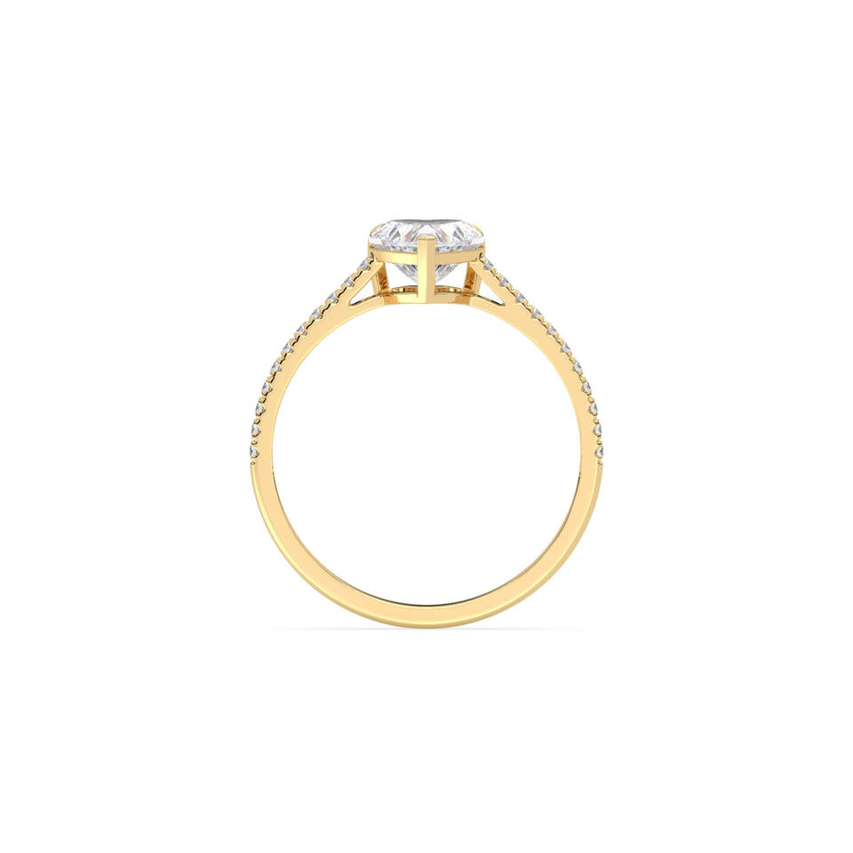 เรเยสหัวใจ1.17กะรัตแหวนหมั้นเพชรแบบโซลิแทร์ที่ปลูกในห้องปฏิบัติการพร้อมด้วยหินด้านข้าง14K ของแข็งสีเหลืองทองอย่างดีเครื่องประดับ