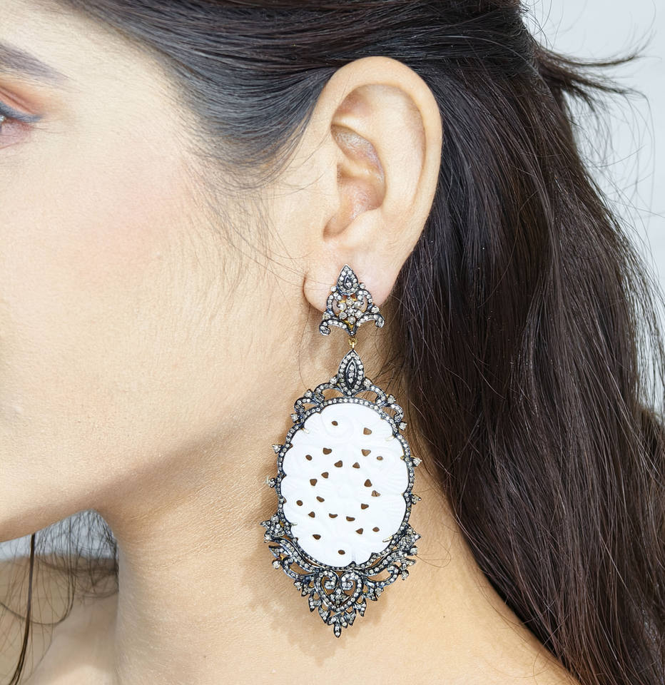 Reyes เครื่องประดับหรูหราระดับไฮเอนด์ทองคำ14K 925เงินสเตอร์ลิงต่างหูประดับเพชรธรรมชาติสำหรับผู้หญิง