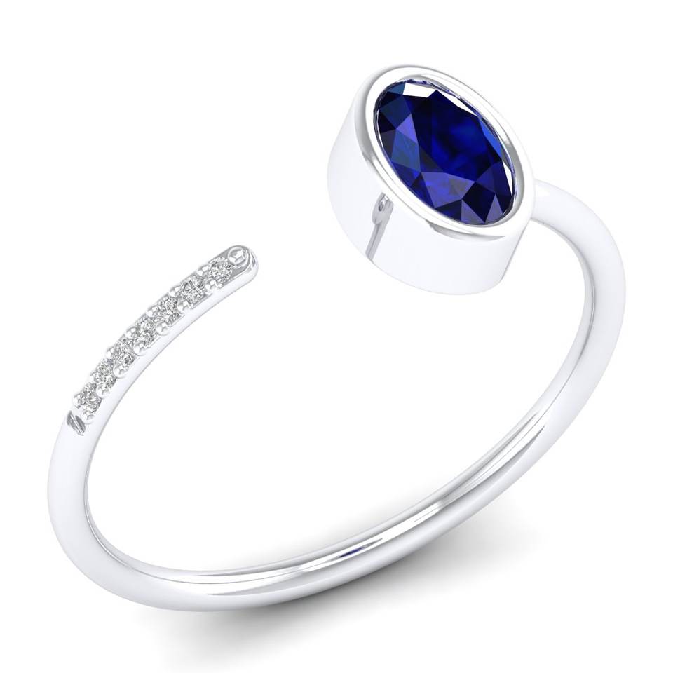 แหวนพลอยไพลินสีน้ำเงินคุณภาพสูง REYES 0.5 กะรัต ตัวเรือนทองคำแท้ 14K พร้อมใบรับรอง GRA ประดับด้วยมอยส์ซาไนต์ เครื่องประดับชั้นดีสำหรับผู้หญิง