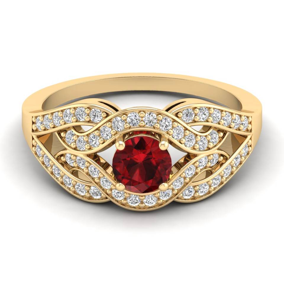 แหวนหมั้นเพชรทรงกลมเจียระไนแบบบริลเลียนต์ 0.5 กะรัต ประดับพลอยโกเมน คุณภาพสูง 14K ทองคำแท้ REYES พร้อมใบรับรอง GRA และเพชรโมอิสซาไนต์ เครื่องประดับชั้นดี