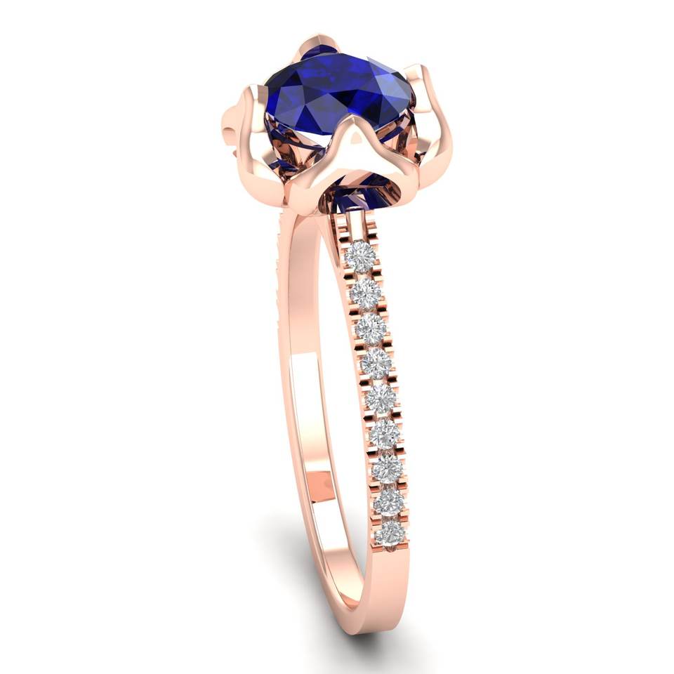 แหวนหมั้นเพชรทองคำแท้ 14K คุณภาพสูง REYES สำหรับผู้หญิง ทรงกลมเจียระไนแบบบริลเลียนท์ ประดับพลอยไพลินสีน้ำเงิน 1 กะรัต