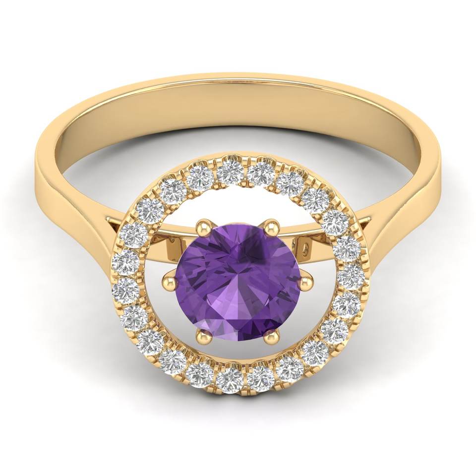 แหวนเงินแท้ 925 คุณภาพสูง REYES ประดับพลอยอะมีทิสต์ทรงกลม 0.84 กะรัต พร้อมใบรับรอง GRA แหวนหมั้นประดับโมอิสซาไนต์
