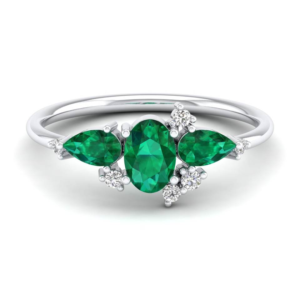 แหวนหมั้นเพชรโมอิสซาไนต์ทองคำแท้ 14K REYES ลดราคาพิเศษสำหรับผู้หญิง ดีไซน์คลาสสิกประดับมรกตสามเม็ด ขายส่งเครื่องประดับคุณภาพสำหรับเธอ