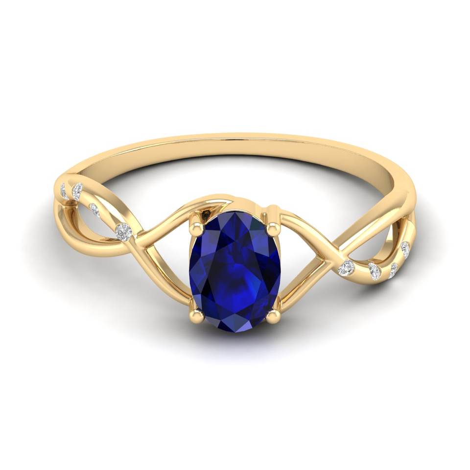 แหวนเพชรพลอยสีน้ำเงินทรงรี 0.75 กะรัต ดีไซน์หรูหรา REYES ทองคำแท้ 14K สำหรับผู้หญิง พร้อมใบรับรอง GRA และเครื่องประดับโมอิสซาไนต์
