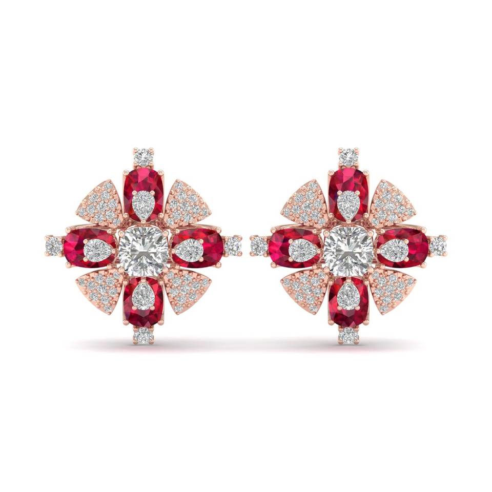 ต่างหูแบบหมุดทองคำแท้ 14K ประดับมอสซาไนต์ GRA Certified และพลอยทับทิม ยี่ห้อ REYES Luxury สำหรับผู้หญิง เหมาะเป็นของขวัญวันครบรอบ