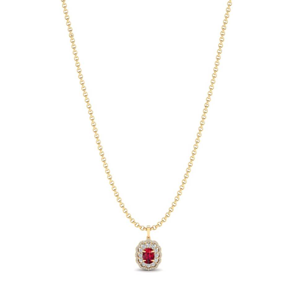 REYES สร้อยคอจี้เงินแท้ 925 ประดับพลอยทับทิมและมอสซาไนต์ สำหรับผู้หญิง เครื่องประดับสำหรับงานเลี้ยงสุดหรู