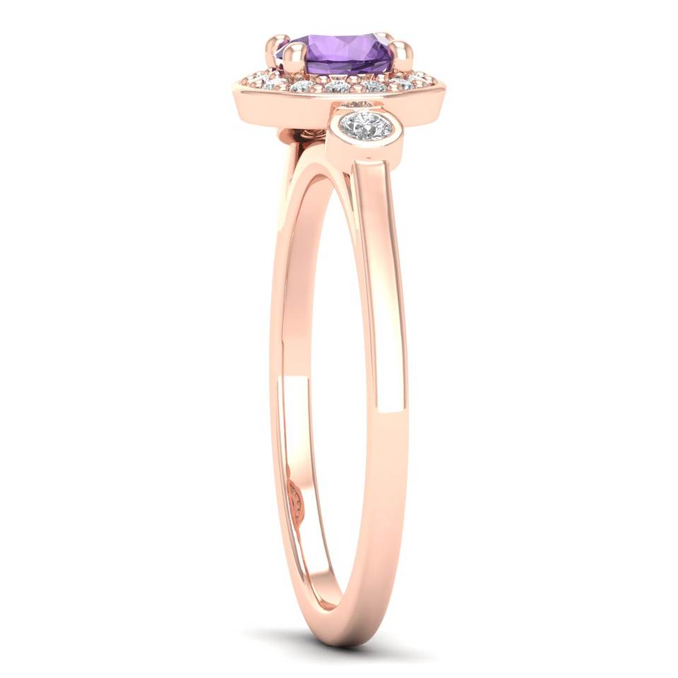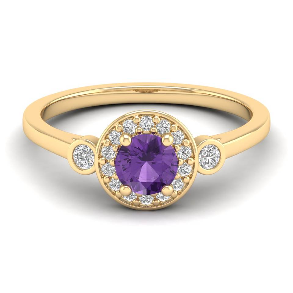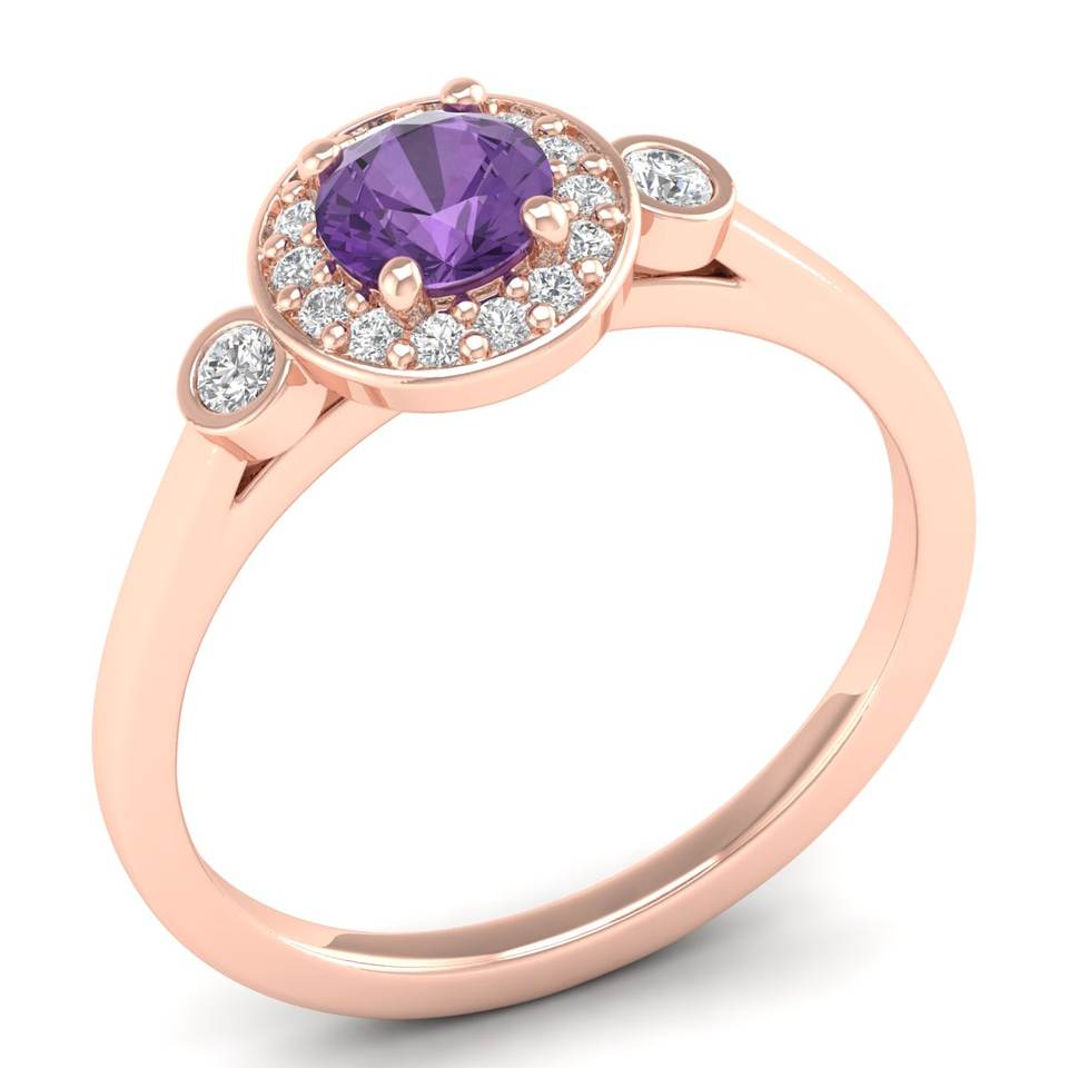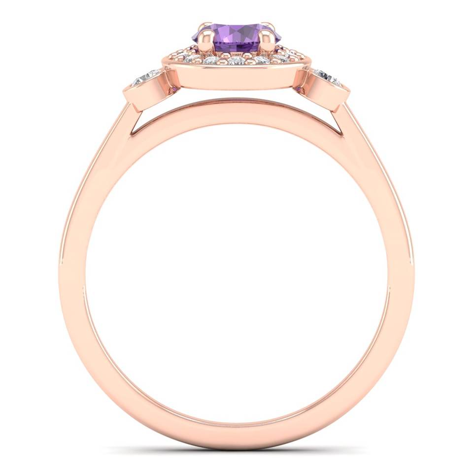 REYES แหวนทอง 14K ดีไซน์หรูหรา ประดับพลอยอเมทิสต์ทรงกลม 0.5 กะรัต พร้อมมอยส์ซาไนต์ เครื่องประดับสำหรับผู้หญิง แหวนคลาสสิก เครื่องประดับชั้นดี