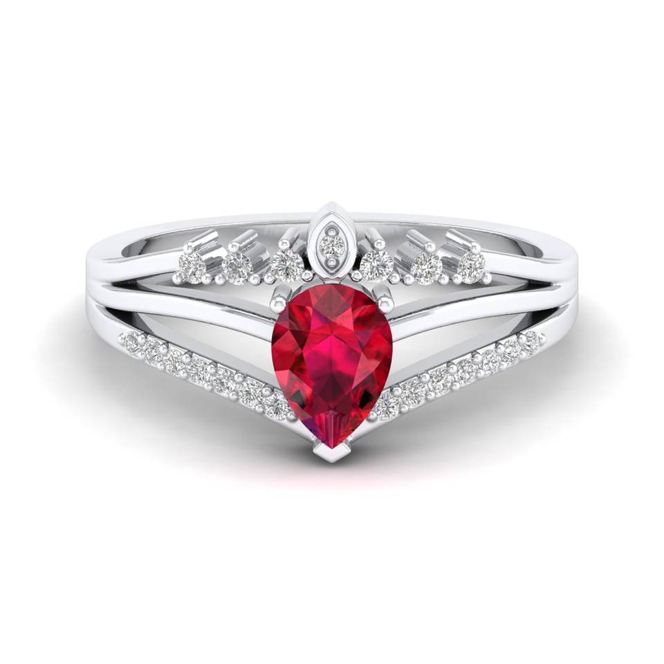 แหวนหมั้นเพชรรูปทรงลูกแพร์ REYES ประดับทับทิม 0.75 กะรัต ทองคำแท้ 14K 18K พร้อมใบรับรอง GRA ประดับด้วยมอสซาไนต์ สำหรับผู้หญิง