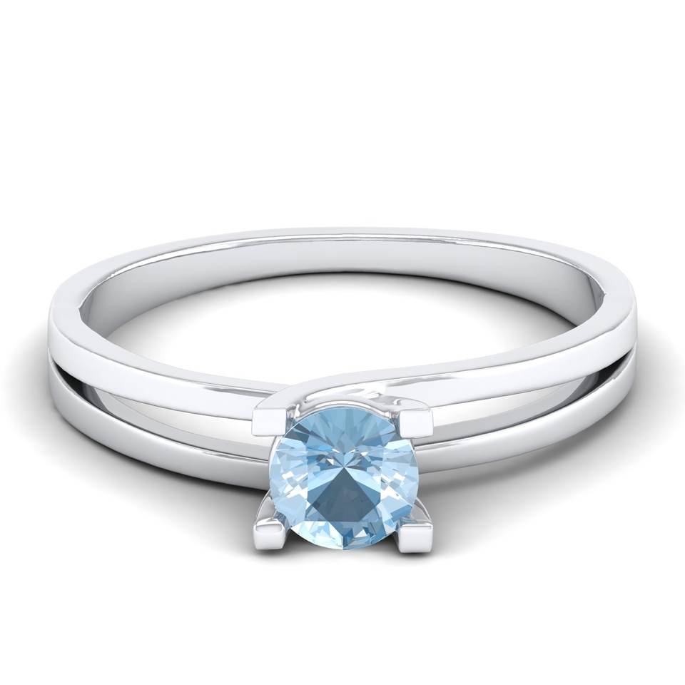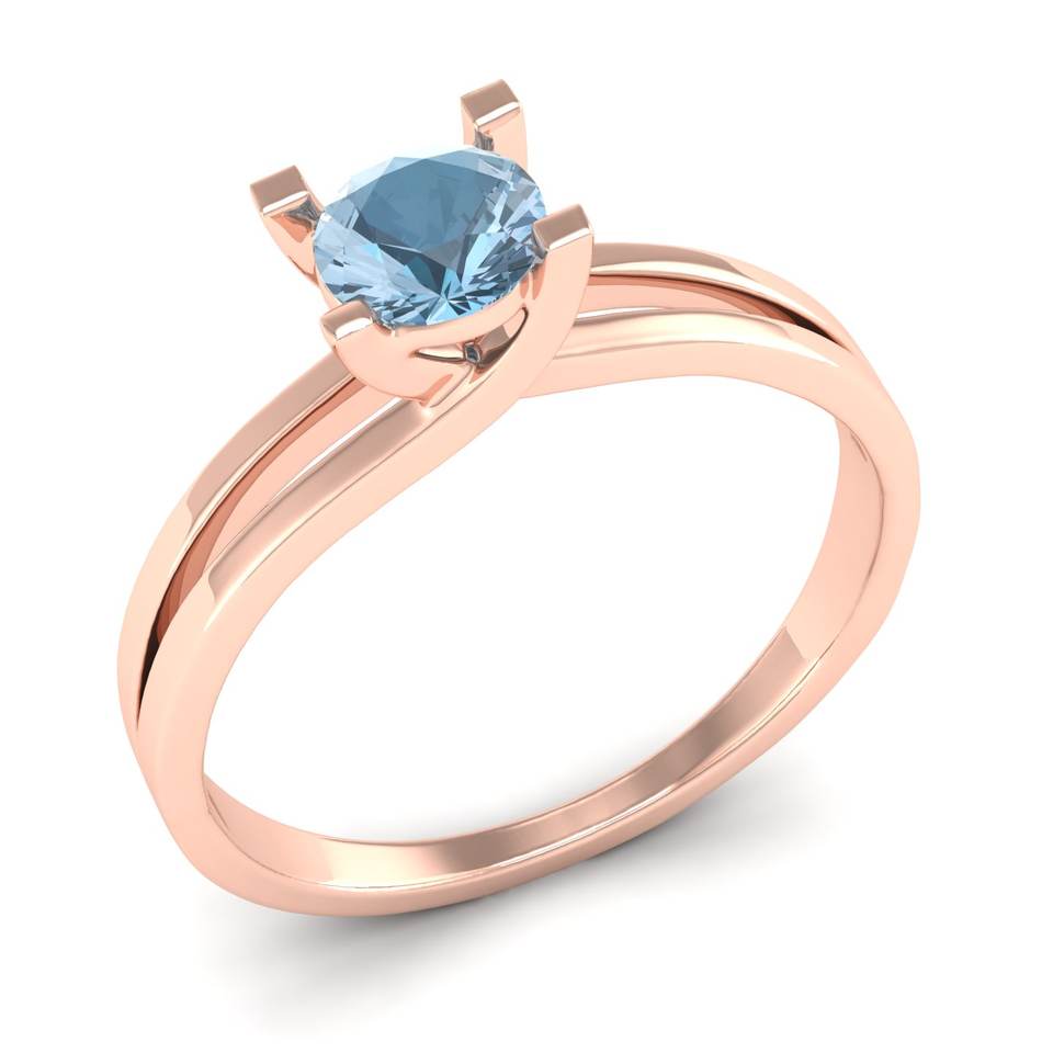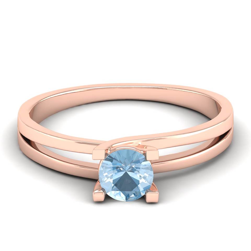 แหวนพลอยอะความารีนทรงกลม 0.5 กะรัต ดีไซน์ใหม่จาก REYES ทำจากทองคำแท้ 14K สีโรสโกลด์ เครื่องประดับอัญมณีสำหรับผู้หญิง