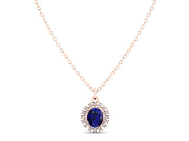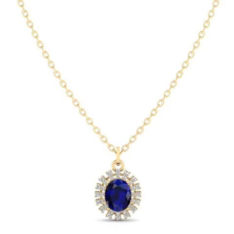 Reyes จี้เพชรโมอิสสีทอง14K สำหรับผู้หญิงจี้อัญมณีแซฟไฟร์สีฟ้า2.5Ct เจียระไนทรงรี