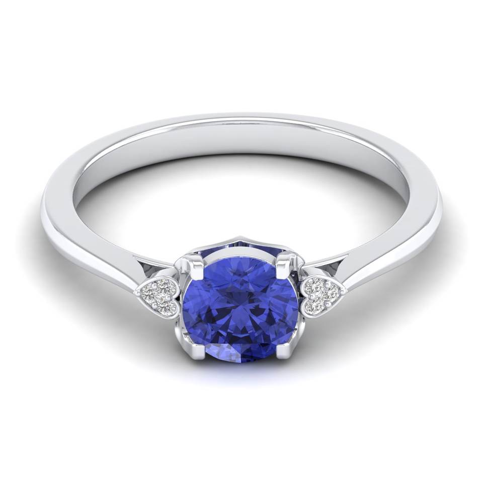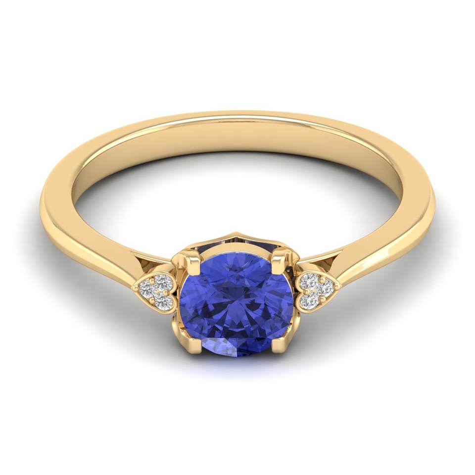 แหวนเพชรหมั้นทองคำแท้ 14K ประดับด้วยพลอยแทนซาไนต์ทรงกลมเจียระไนแบบรอนด์คัท น้ำหนัก 0.84 กะรัต ดีไซน์ดั้งเดิมจาก REYES ผลิตด้วยมือ
