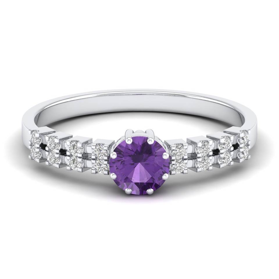แหวนหมั้นเพชรแท้ 14K ทองคำแท้ REYES ประดับอเมทิสต์ทรงกลม 0.5 กะรัต พร้อมใบรับรอง IGI สำหรับผู้หญิง
