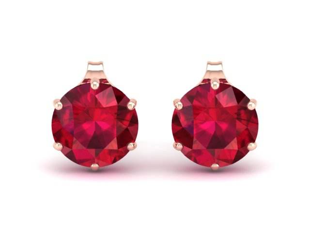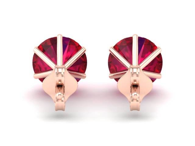 Reyes ต่างหูสตั๊ดกลมคุณภาพพรีเมี่ยมตัด2.6เพชรทับทิมกะรัตกลับแกนต่างหูทองเพชรโมอิสซาไนต์14K