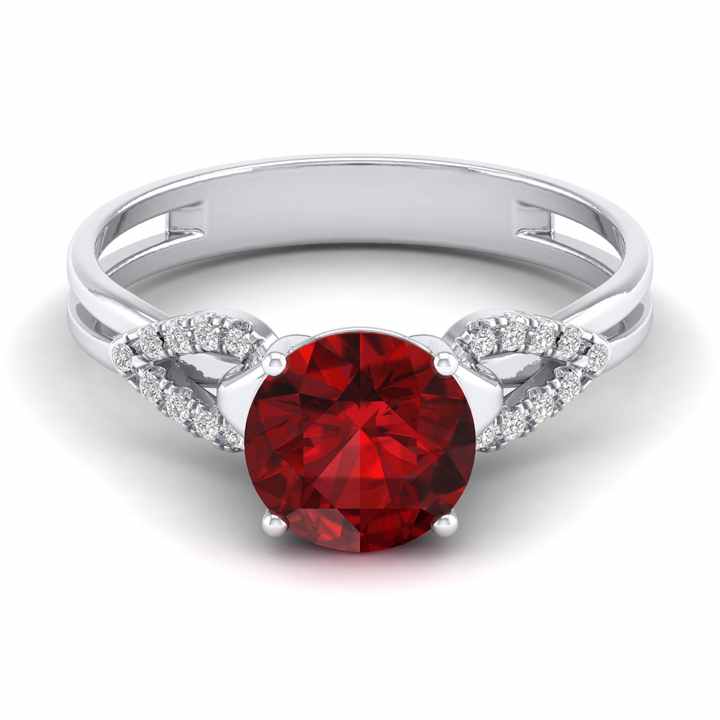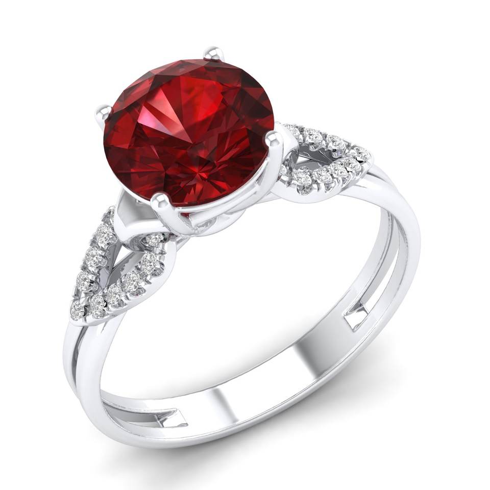 แหวนพลอยโกเมนทรงกลมเจียระไนแบบบริลเลียนต์ 2 กะรัต REYES สำหรับผู้หญิง เงินแท้ 925 แหวนมอสซาไนต์เม็ดเดี่ยวความใส VVS