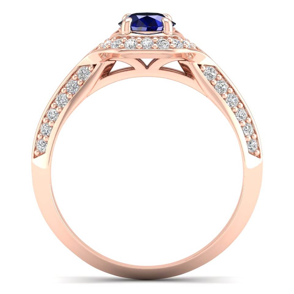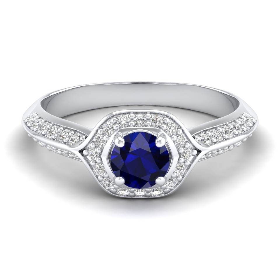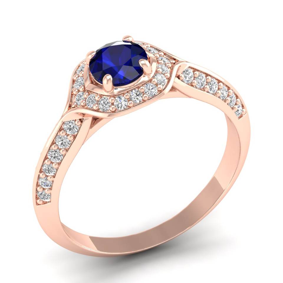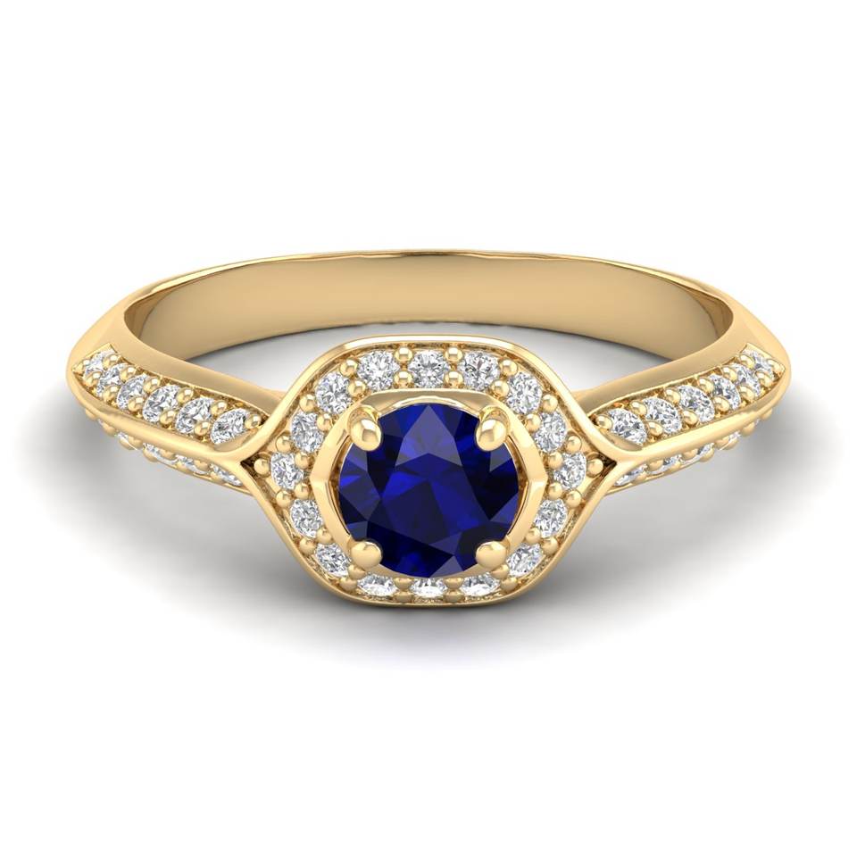 แหวนพลอยไพลินสีน้ำเงินทรงกลม REYES น้ำหนัก 0.5 กะรัต สำหรับผู้หญิง ได้รับการรับรองจาก GRA ทองคำแท้ 14K 18K ประดับด้วยโมอิสซาไนต์ เครื่องประดับชั้นดี