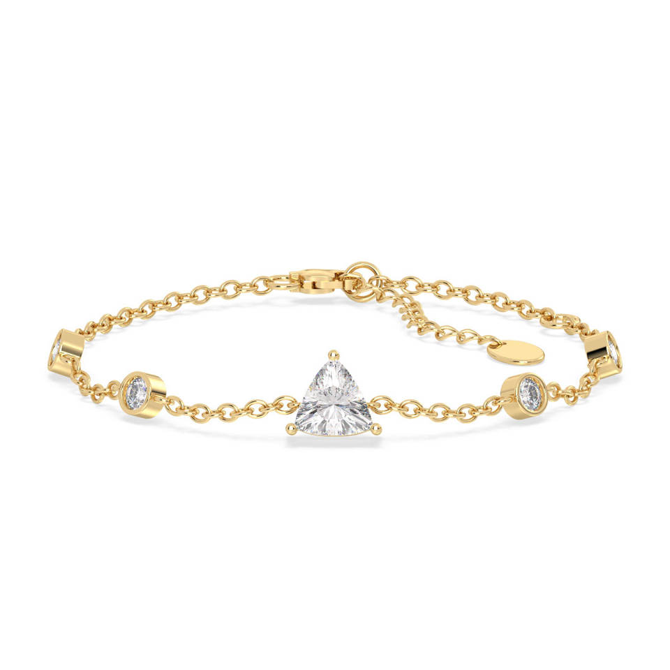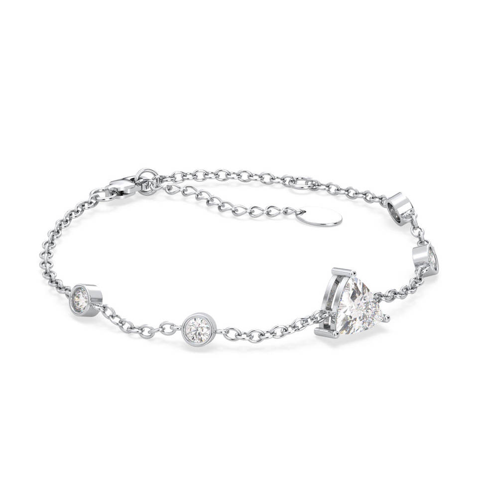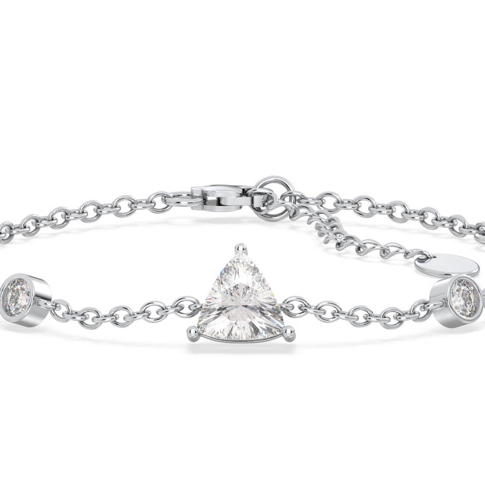 สร้อยข้อมือเพชรทรงทริลเลียนคัท 7 มม. ทองคำขาว 14K 18K REYES Sparkling เพชรเลี้ยงในห้องปฏิบัติการ ของขวัญวันครบรอบที่สมบูรณ์แบบสำหรับเธอและเขา