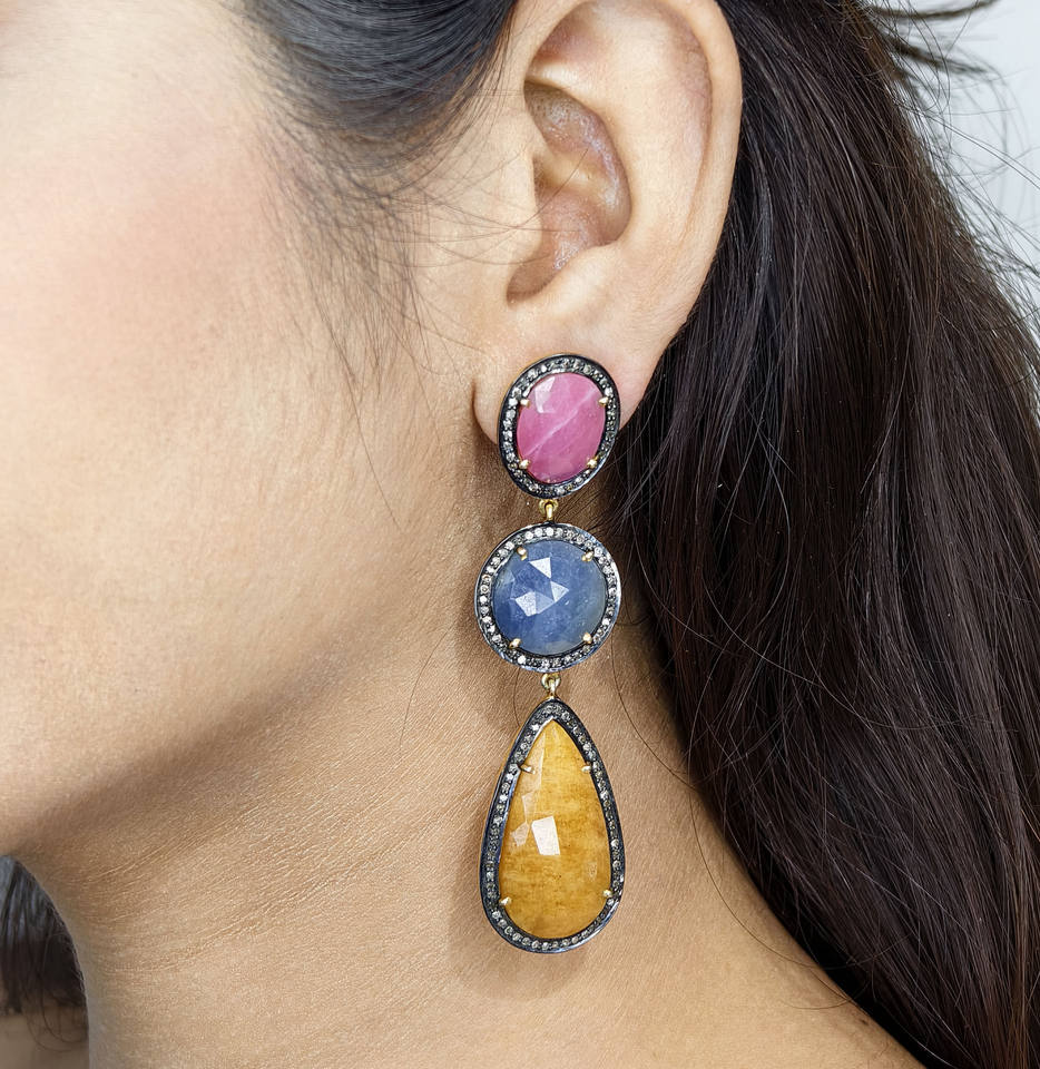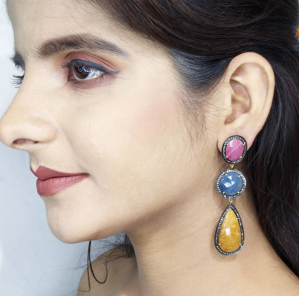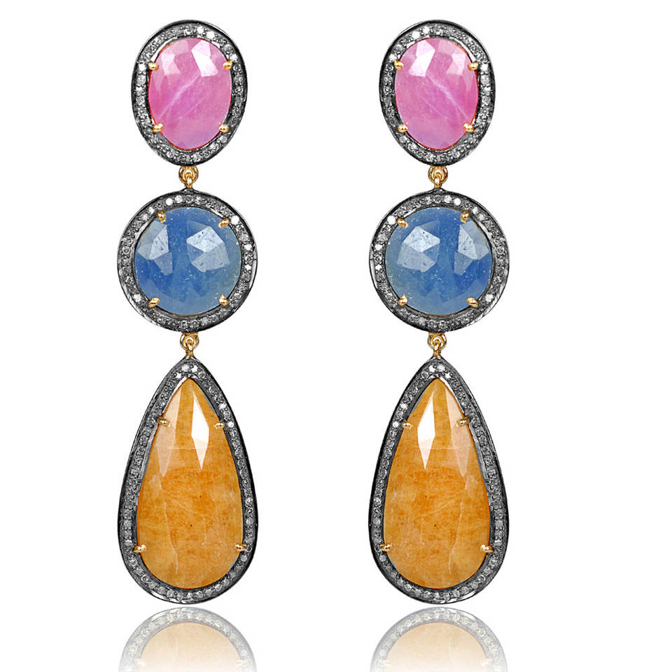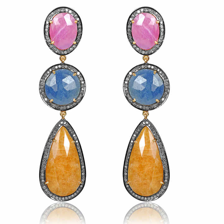 REYES Stunning Blue Sapphire And Ruby Gemstone Victorian Earrings Luxury 14K Gold 925 Silver Natural Diamond Jewelry For Women