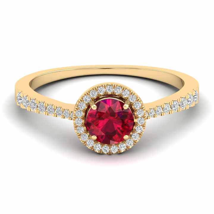 แหวนเพชรทรงกลมประดับทับทิม 0.84 กะรัต ทองคำแท้ 14K ได้รับการรับรองจาก IGI ของ REYES Wholesale พร้อมเพชรรอบวงแหวน ประดับเพชรรอบวงแหวน สำหรับเป็นของขวัญวันเกิด เครื่องประดับชั้นดี