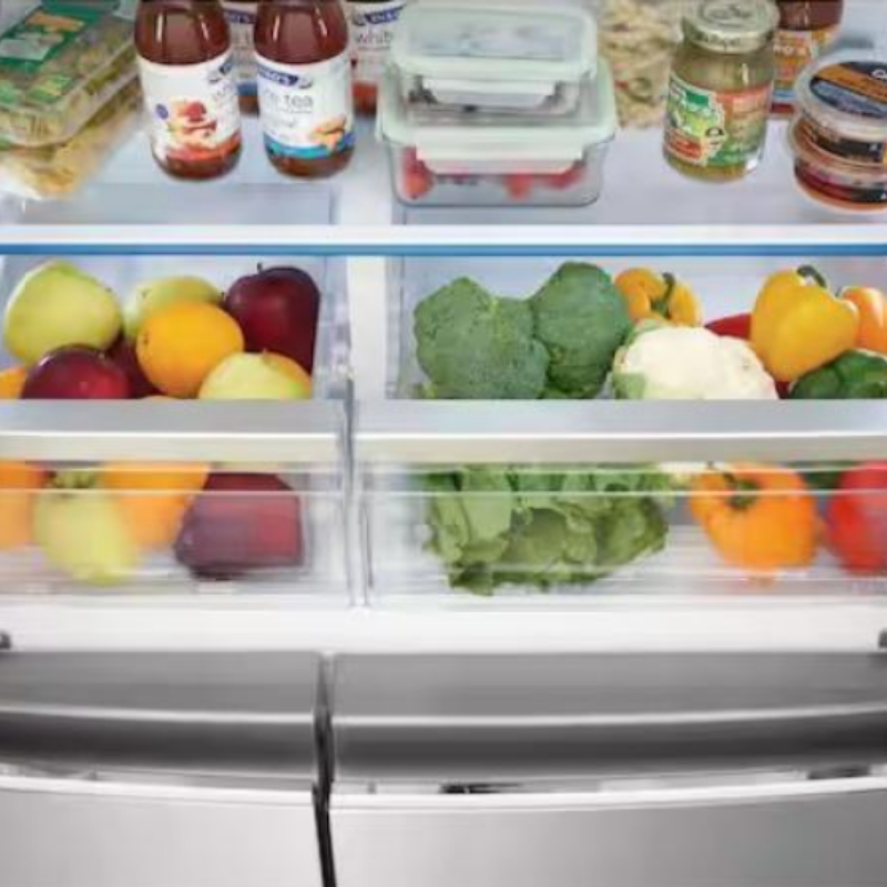 RF29DB9900QD 29 คิว ฟุต ตู้เย็นอัจฉริยะสแตนเลส 4 ประตูแบบเฟรนช์ดอร์ พร้อมกระจกนิรภัย ลายเรียบ