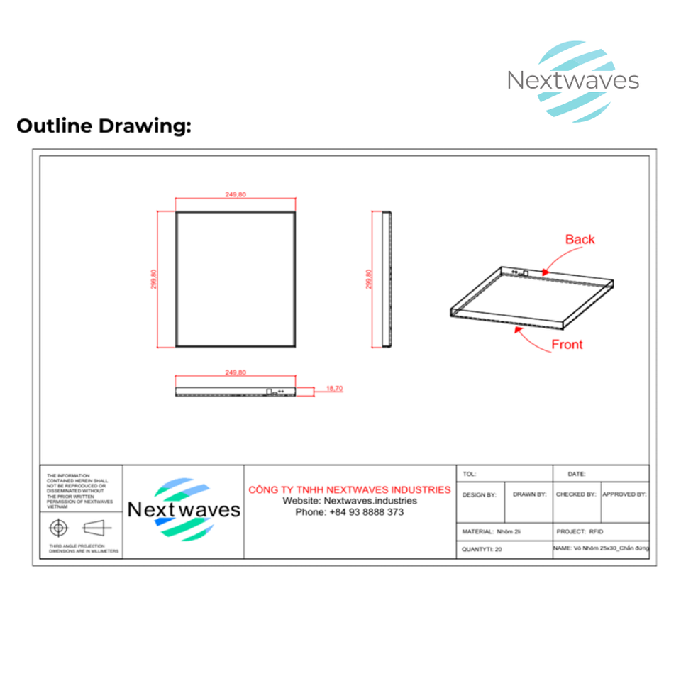 เครื่องอ่าน RFID แบบ Dual Near-Field UHF RFID Antenna Flat Panel สำหรับระบบชำระเงินด้วยตนเอง รุ่น RD-U-CFN2-302501 จาก Nextwaves เวียดนาม ขายส่ง