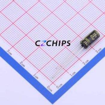 ตัวเก็บประจุอิเล็กโทรไลต์อะลูมิเนียมแบบ Through-Hole รุ่น RG035M470LO5*11TA-1A1E ขนาด D5xL11 มม. 47uF 20% 35V ขา 2 มม.
