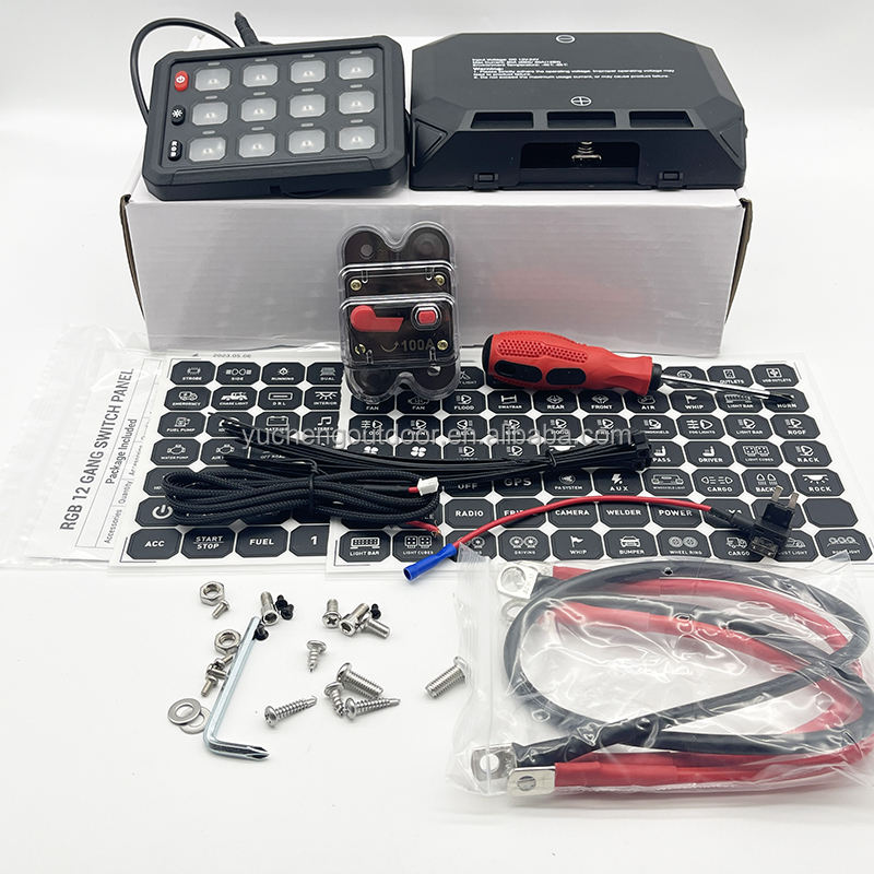 แผงสวิตช์ไฟ LED 12 GANG RGB 12 GANG ระบบรีเลย์บาร์ไฟ LED 12V 24V กล่องควบคุมรถยนต์บัส
