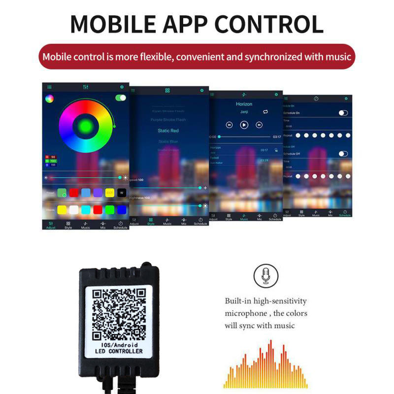 ไฟ LED ตกแต่ง RGB 5050 สำหรับตกแต่งพื้นที่ภายในรถยนต์ พร้อมรีโมทไร้สาย ควบคุมผ่านแอพฯ ตั้งค่าเพลงได้