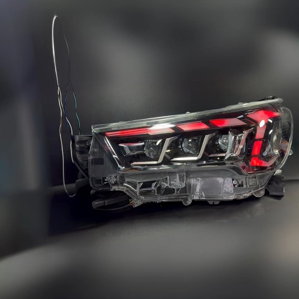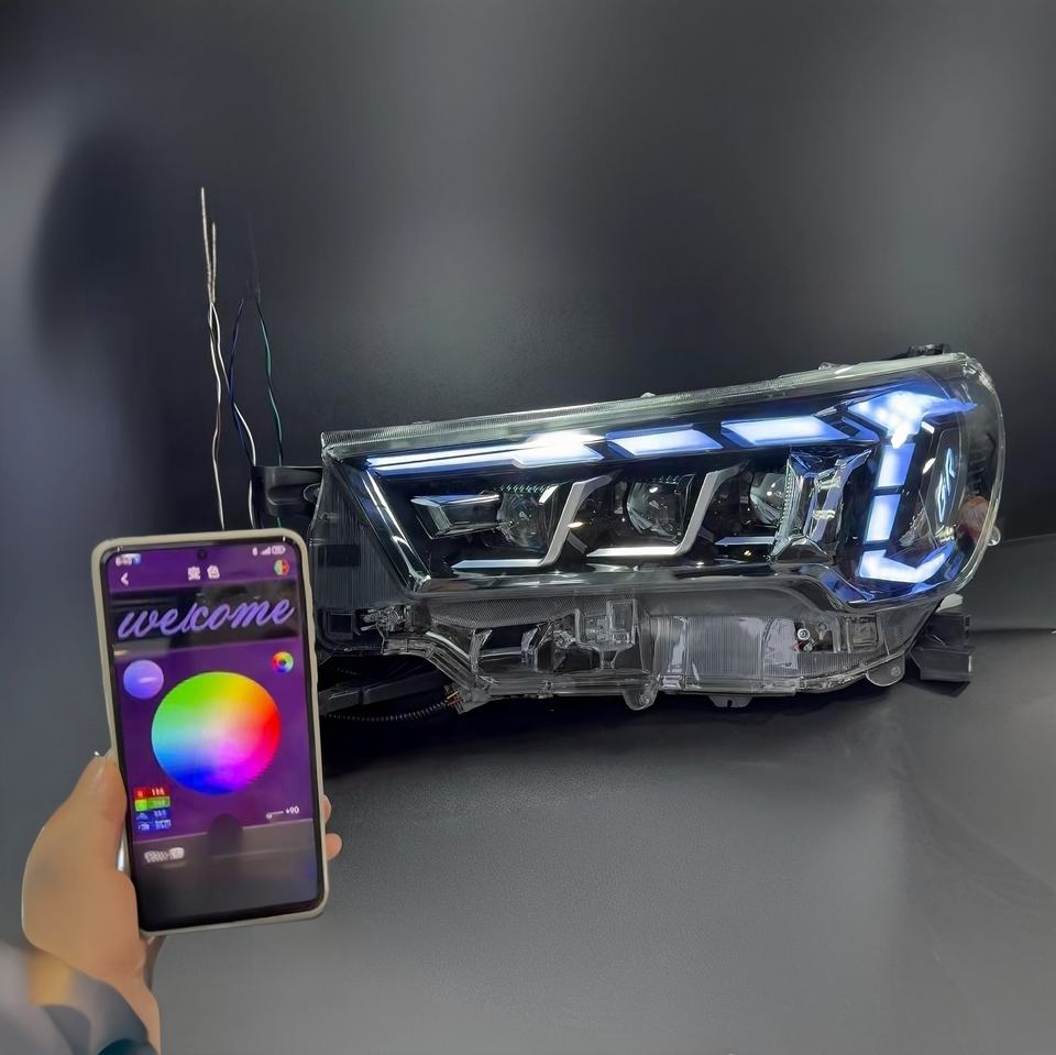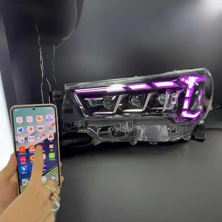 ไฟหน้า RGB สำหรับ Toyota Hilux Rocco ปี 2021 2022 2023 2024 ไฟหน้า LED แบบดัดแปลง สีฟ้า พร้อมตราสัญลักษณ์ G R