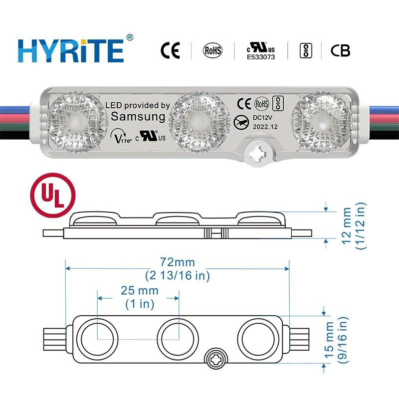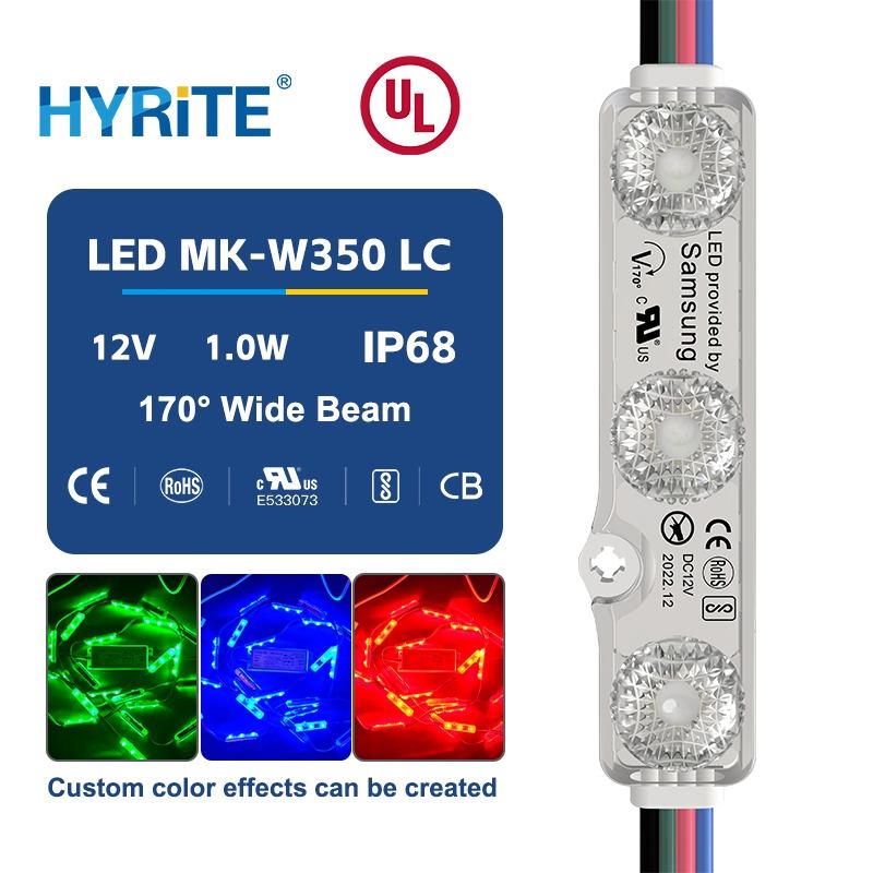 โมดูลไฟ LED RGB พร้อมเลนส์มุมมอง 170 องศา สำหรับตัวอักษรแบบช่องลึก ใช้ไฟ DC 12V กันน้ำระดับ IP68 พร้อมกาว 3M ติดตั้งง่าย ได้รับมาตรฐาน UL