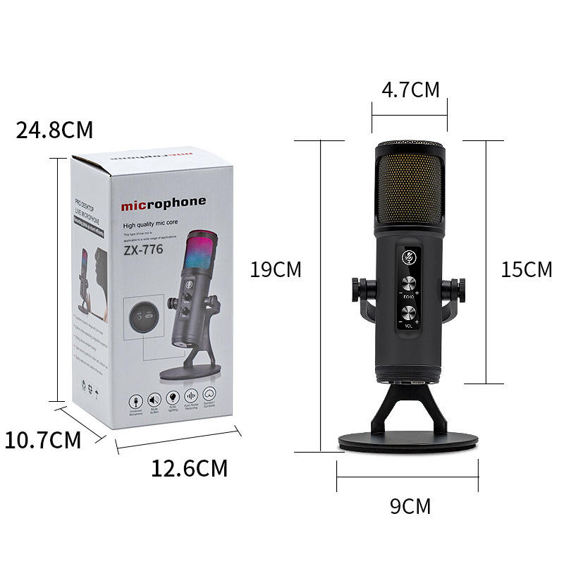 ZX-776ไมโครโฟนคอนเดนเซอร์ USB RGB | ปลั๊ก & เล่นสำหรับใช้ในสตูดิโอคอมพิวเตอร์ | เวอร์ชั่นภาษาอังกฤษ