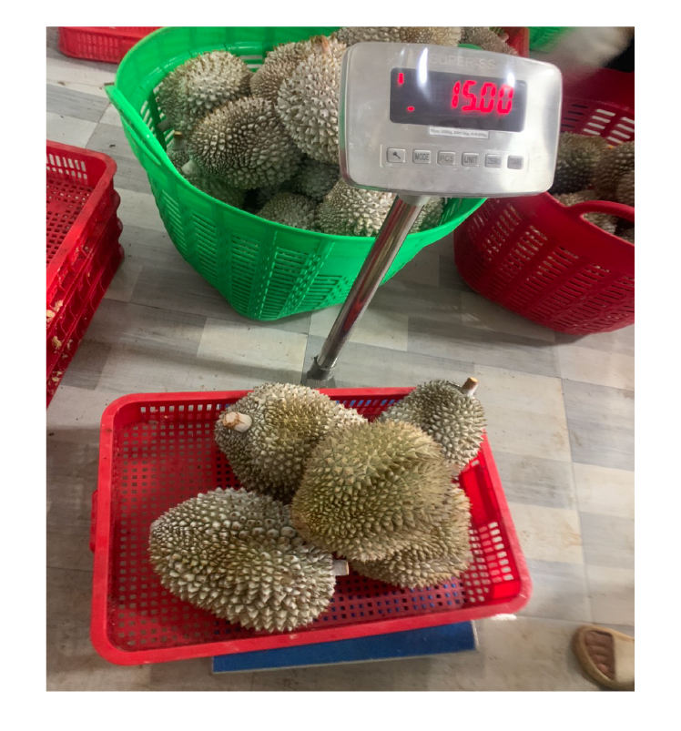 ผลไม้ทุเรียนสด:หวานและเหลือง