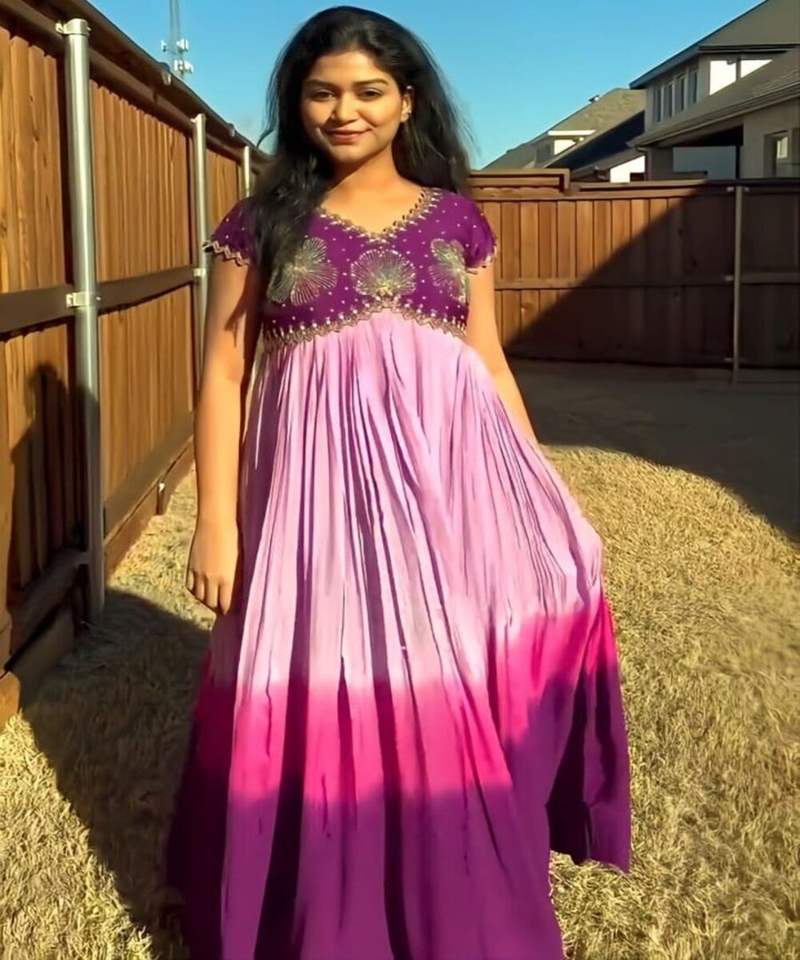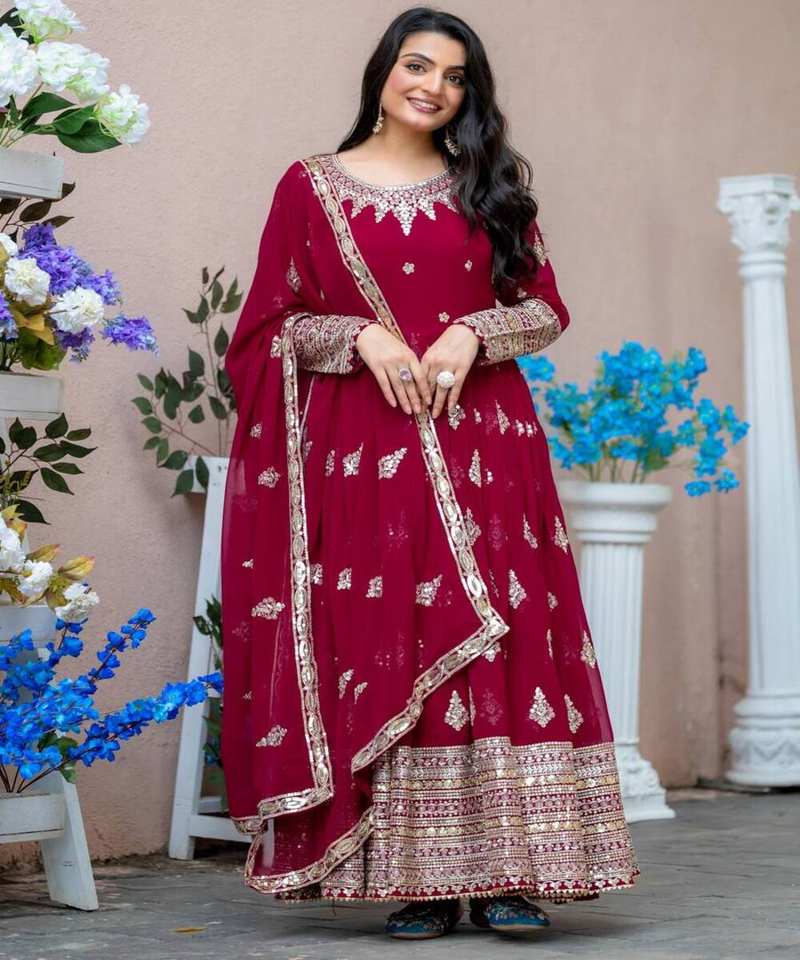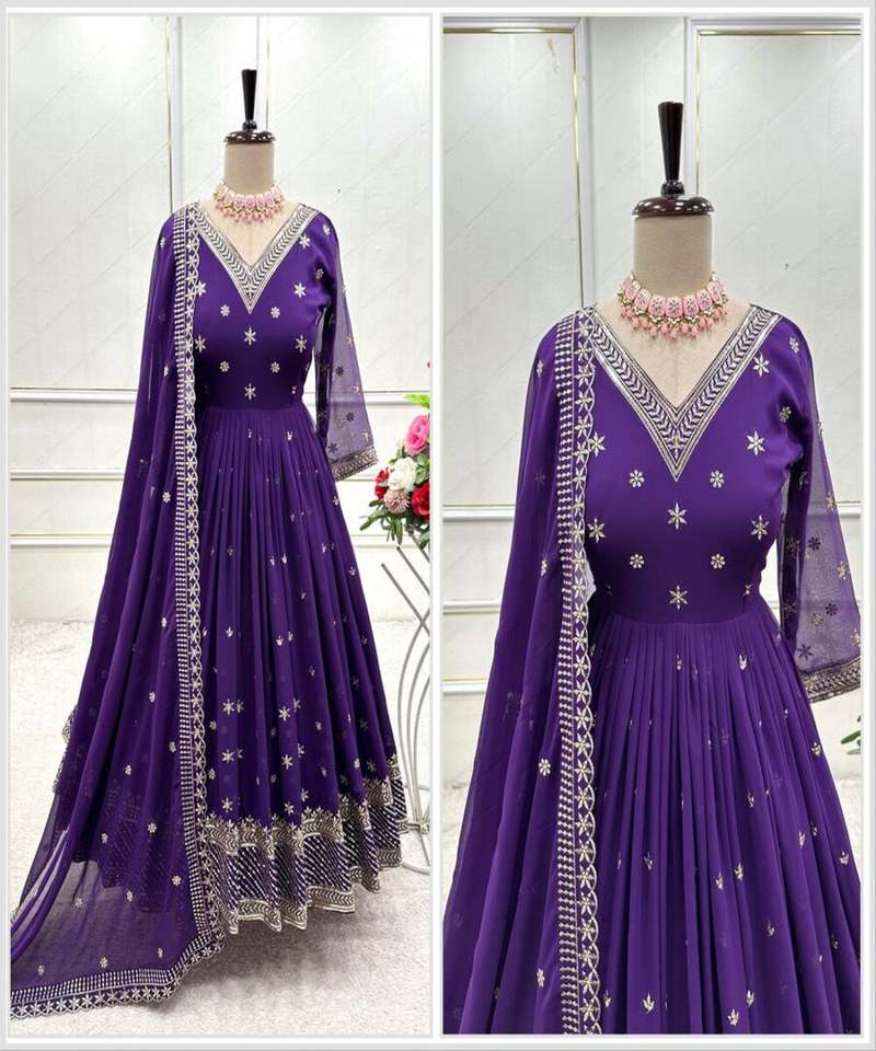 ชุดราตรี Anarkali สำหรับงานปักลายผ้า Georgette