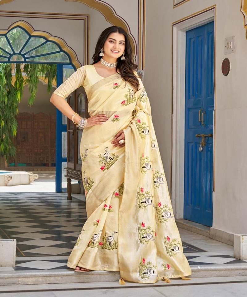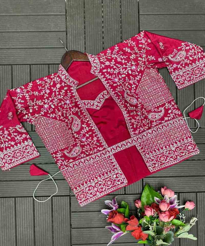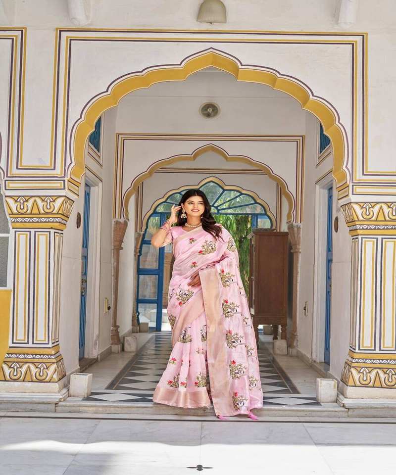 ผ้าส่าหรีงานปักลายเส้นใยโคตาสีชมพูแบบเย็บติดเสื้อเบลาส์สวมใส่ได้ทุกวันเสื้อผ้าพื้นเมือง
