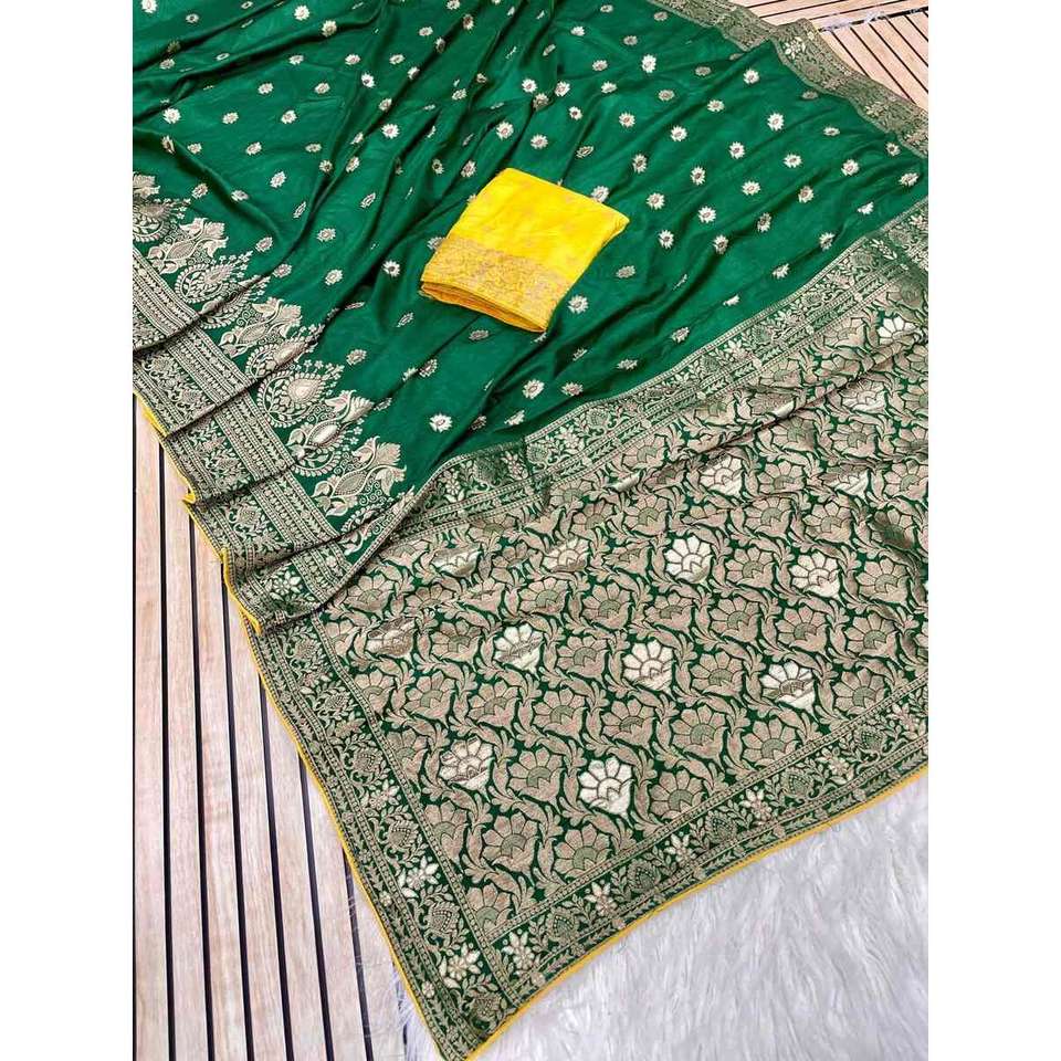ผ้าไหมวิสโคสลายโดลาสานอย่างดี พร้อมเสื้อคลุมแบบไม่เย็บติด สีเขียว