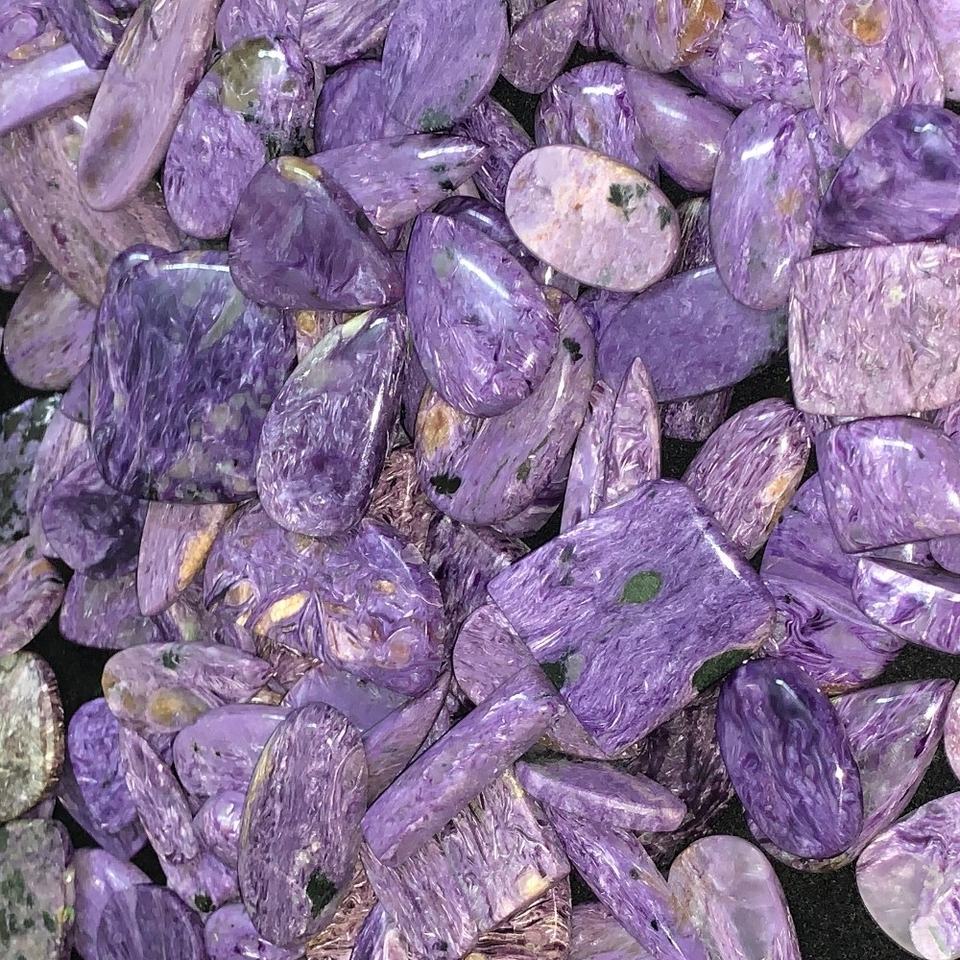 RIDA CREATIONS คริสตัลบำบัดธรรมชาติ คาโบชองสีม่วง ชารอยต์ รูปทรงผสมผสาน สีสันสวยงาม คุณภาพสูง สำหรับทำเครื่องประดับ