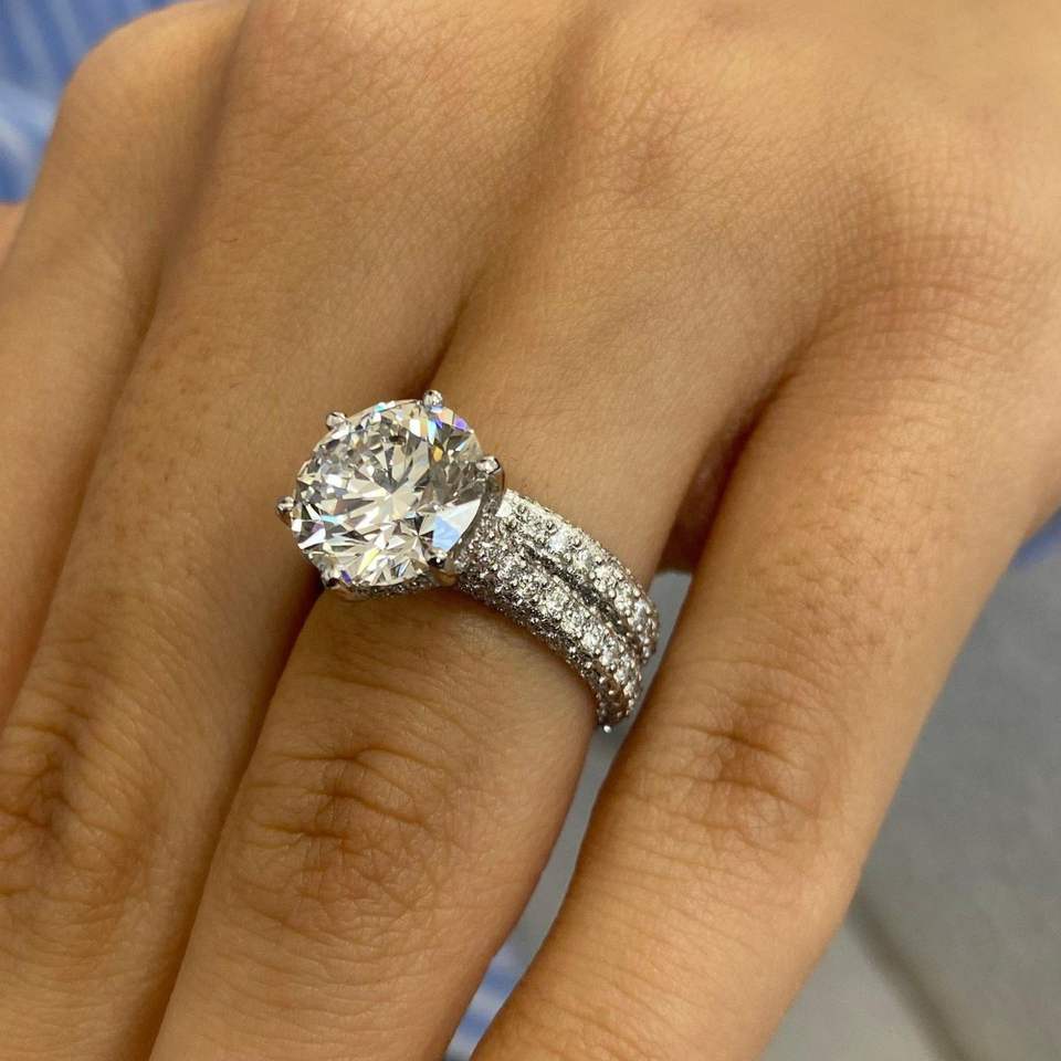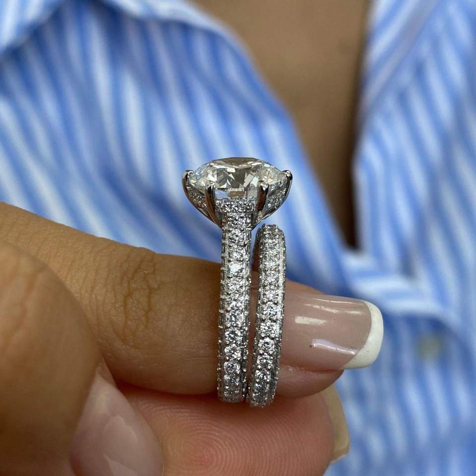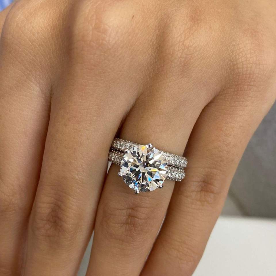 แหวนหมั้นเพชรทรงกลม RITZIN IGI Certified สี E ความสะอาด VS1 ฝังเพชรแบบ Pave ดีไซน์น่ารัก ตัวเรือนทองคำขาว 14K ชุดแหวนแต่งงาน