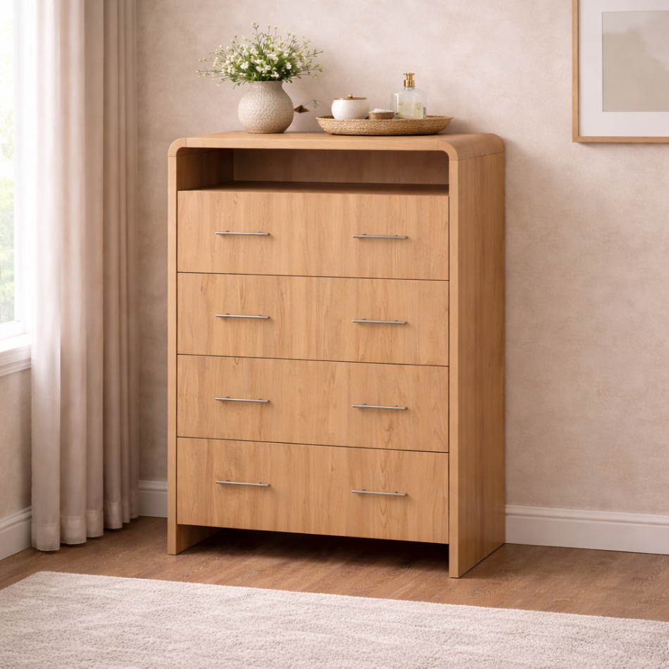ชุดเฟอร์นิเจอร์ห้องนอนและห้องนั่งเล่น RIVEO RANGE คอลเลคชั่นไม้ ตู้เสื้อผ้าแบบสูง 4 ลิ้นชัก ทนทาน เป็นมิตรกับสิ่งแวดล้อม