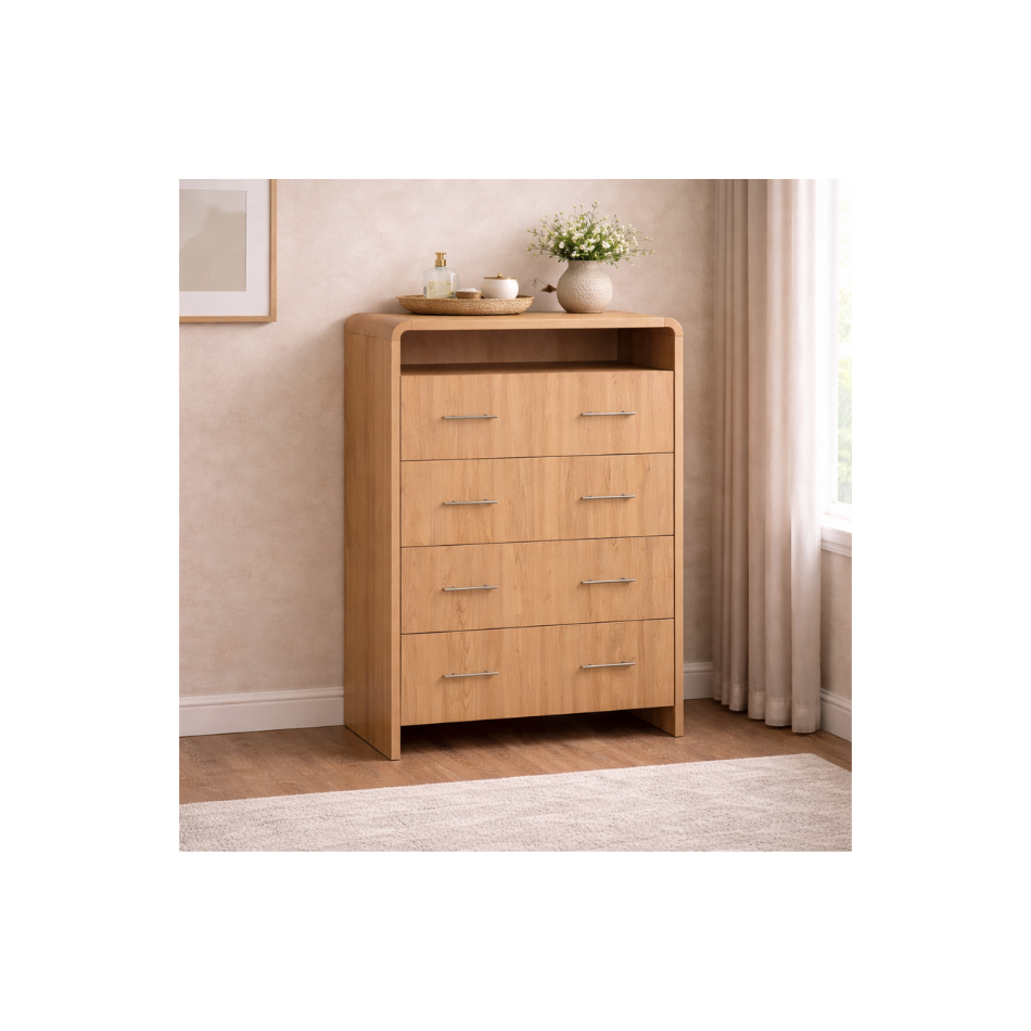 ชุดเฟอร์นิเจอร์ห้องนอนและห้องนั่งเล่น RIVEO RANGE คอลเลคชั่นไม้ ตู้เสื้อผ้าทนทาน เป็นมิตรกับสิ่งแวดล้อม คุณภาพดี ตู้ลิ้นชักสูง 4 ชั้น