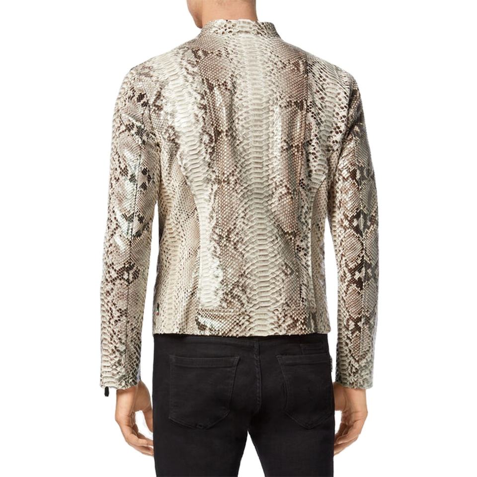 Rivian Atlantic เสื้อแจ็คเก็ตหนังงูหลามนูนสำหรับผู้ชายแจ็คเก็ตหนังงูใหม่สำหรับฤดูหนาว OEM คอตั้ง