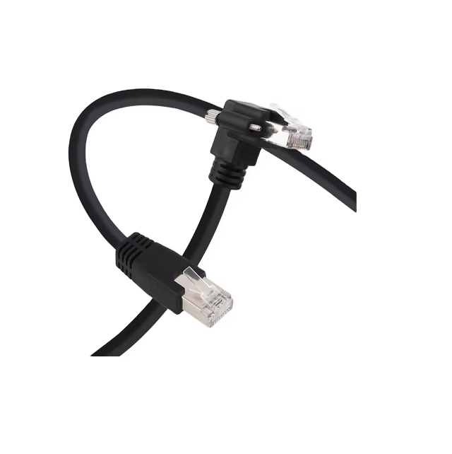 RJ45 CAT6 GigE สายกล้องเชื่อมต่อสกรูล็อคมุมขวาสำหรับเครื่องระบบการมองเห็นและอุปกรณ์อัตโนมัติ