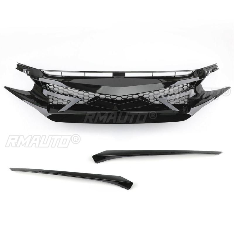 Rmauto jdm กระจังหน้ารถสีดำเงา ABS สไตล์การต่อสู้ตะแกรงรถสำหรับ Honda Civic 10TH Gen 2016-2019แต่งตัวถังรถ