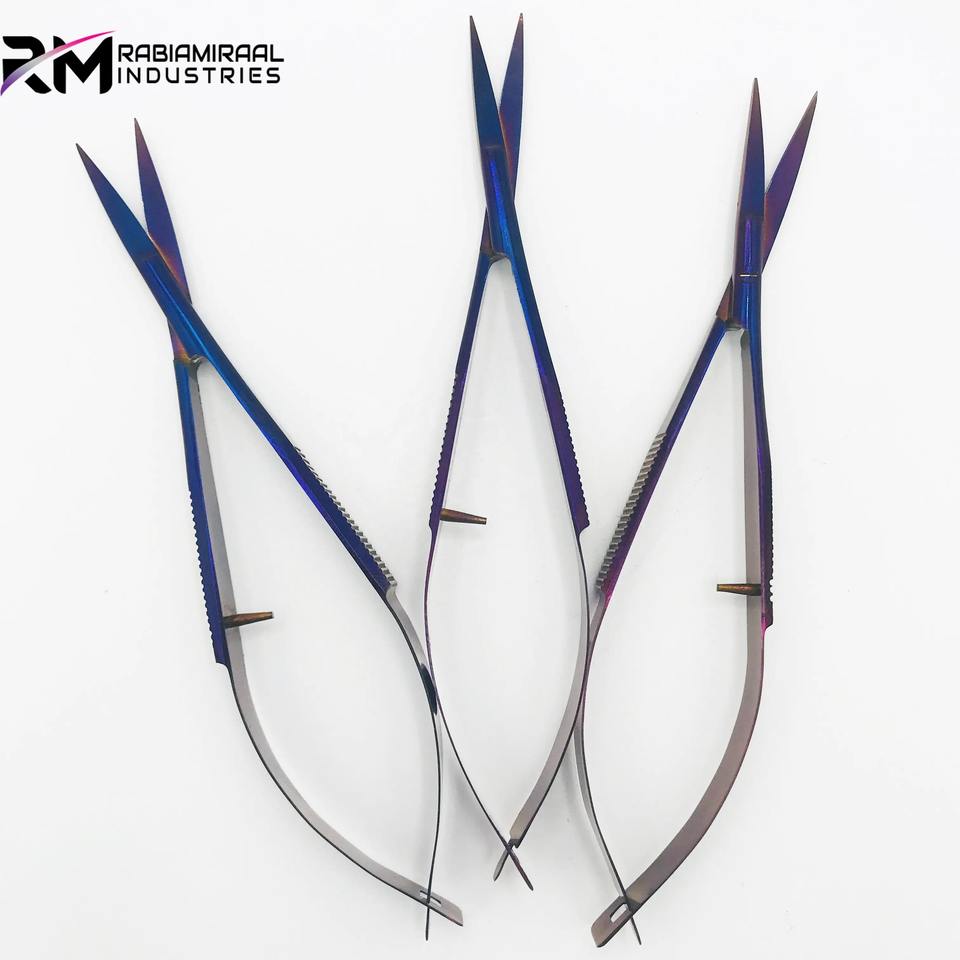 RMI กรรไกรตัดไมโครแบบโค้งสำหรับตัดคิ้วกรรไกรสปริงพลาสมาสีน้ำเงินที่ปลายแหลมเป็นพิเศษสำหรับ RMI-MZ-SPS-1611แต่งคิ้ว