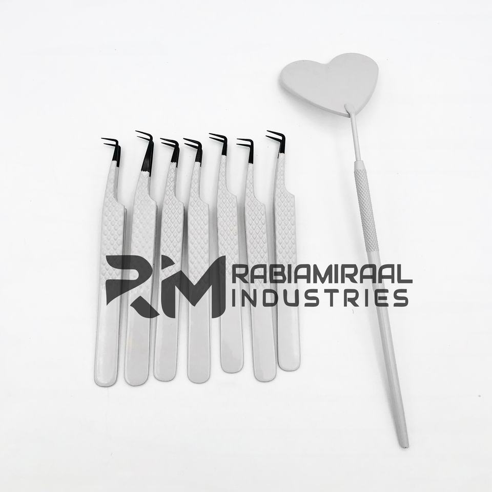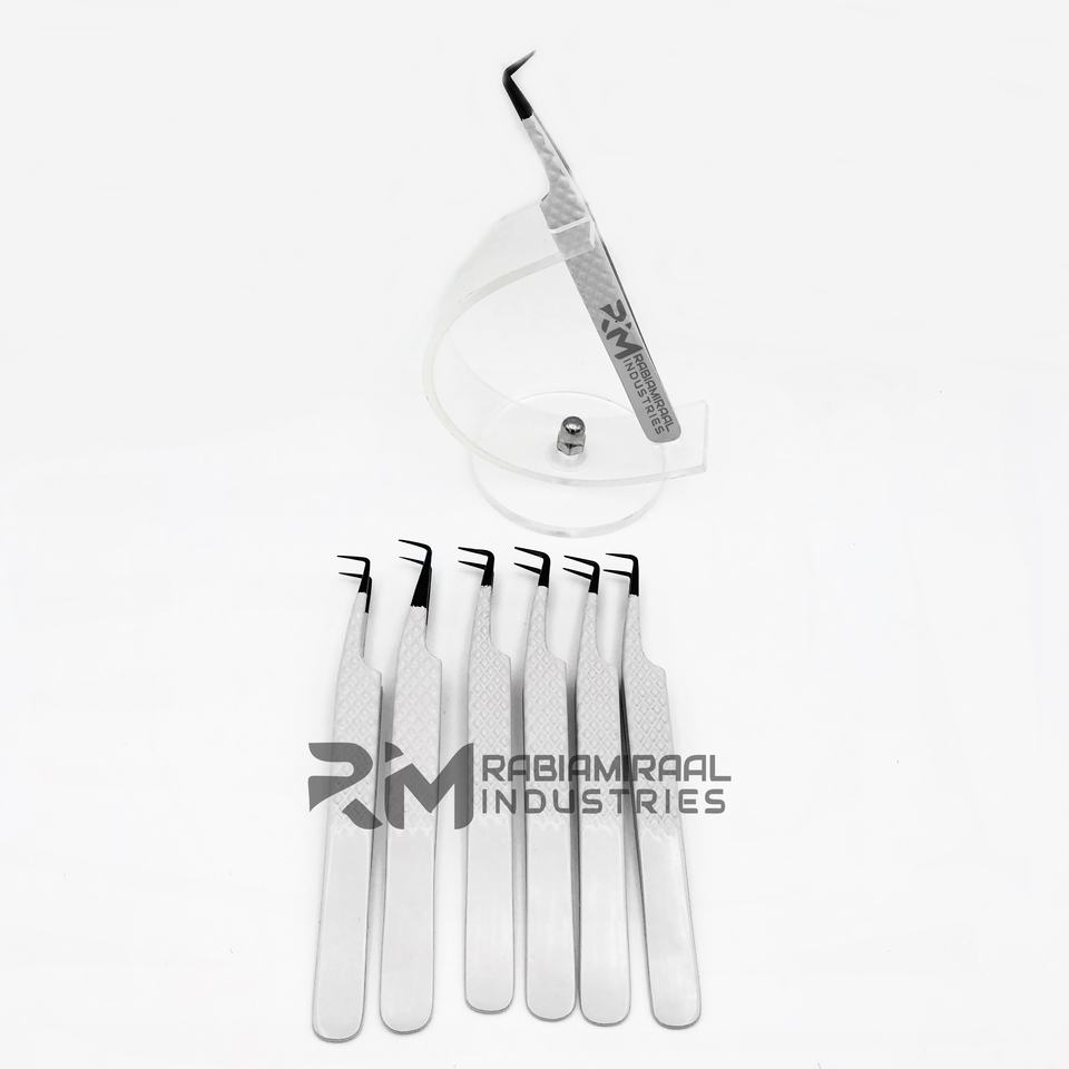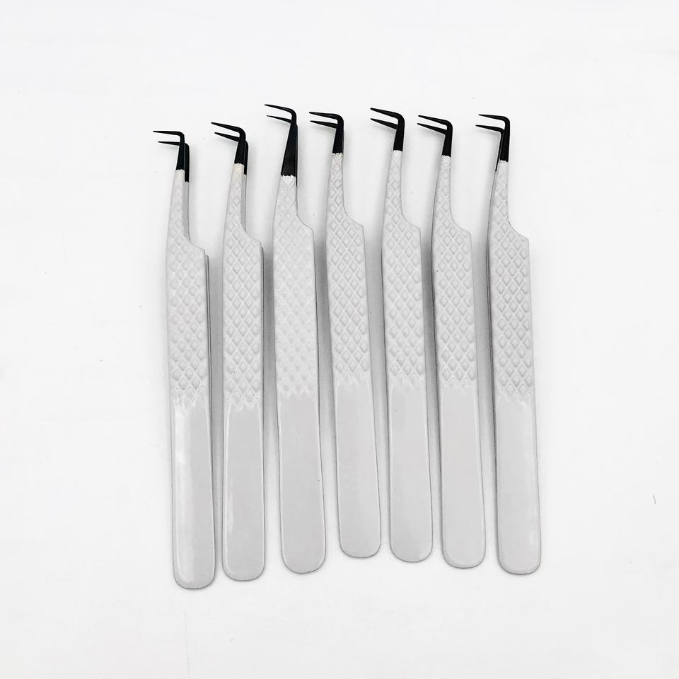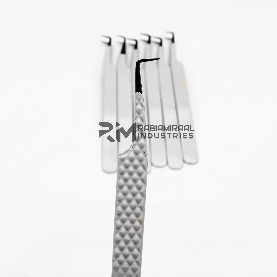 คีมคีบขนตาปลอมปลายแหลมทำจากสเตนเลสสตีลสีดำแหนบสำหรับขนตาสีขาวและปลายแหลมดีไซน์ตามสั่งของ RMI