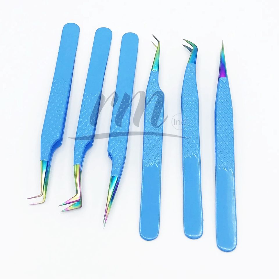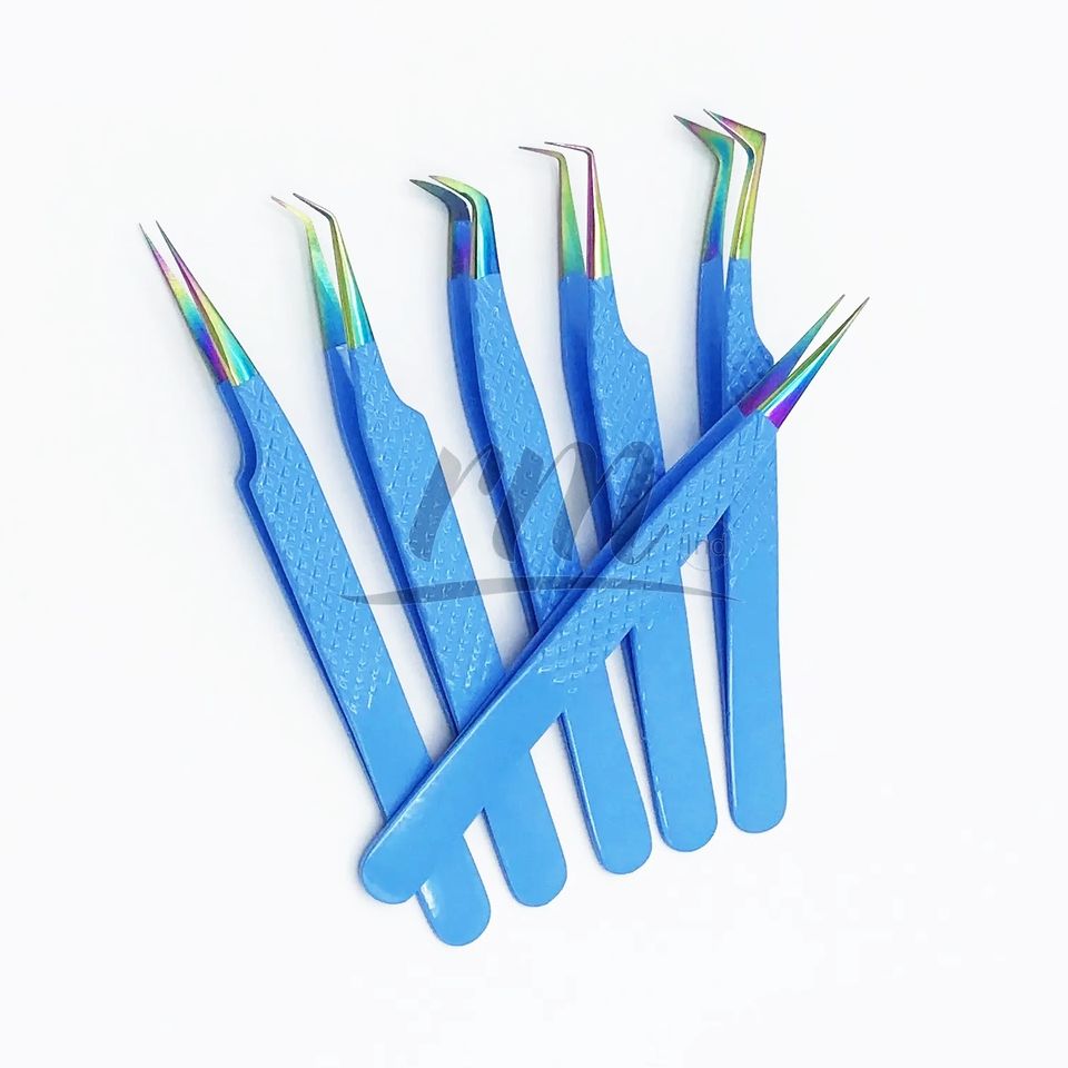 RMI แหนบต่อขนตาเพิ่มวอลลุ่มแบบรัสเซียแหนบต่อขนตาสีรุ้งปลายท้องฟ้าสีฟ้าติดฉลากส่วนตัว